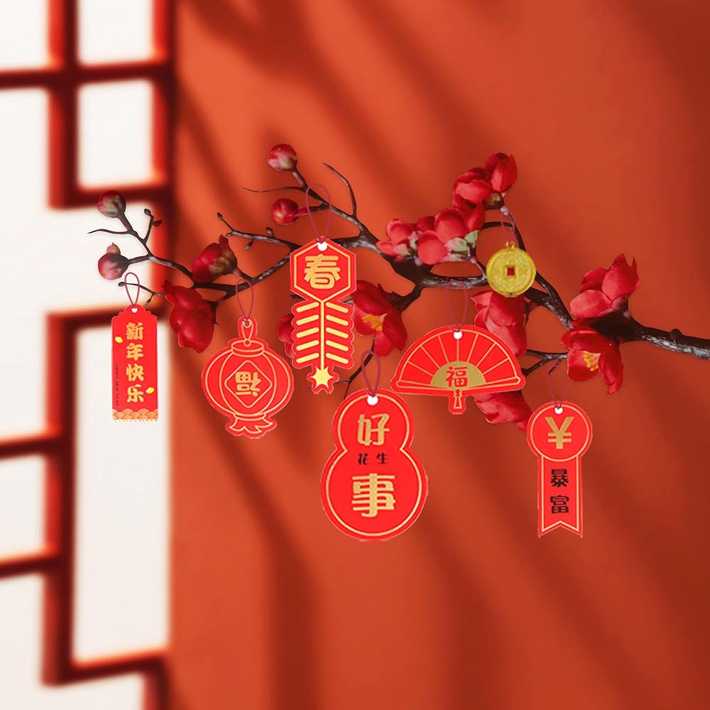 هدايا لطيفة - تعتبر القلادات الحمراء لمهرجان الربيع الصيني هدايا مثالية لأصدقائك وأفراد عائلتك في الكريسماس أو رأس السنة الجديدة، أنماط ميمونة وديكورات رائعة تنقل بركاتك الدافئة