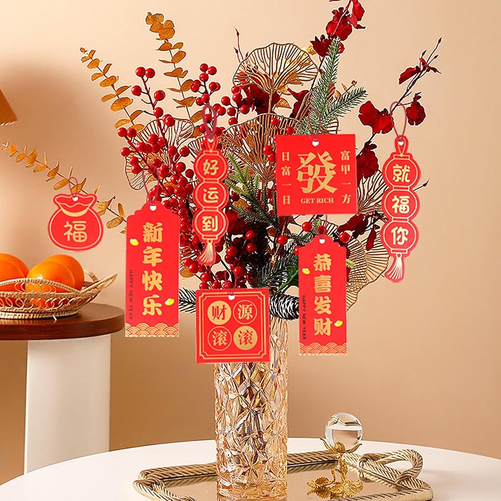 ديكور مثالي لمهرجان الربيع: لا تضيف زينة رأس السنة الجديدة إلى الأجواء الاحتفالية فحسب، بل تجلب أيضًا نوعًا من القوت والمباركة للعام الجديد. يمكنك تعليقها على الأبواب وقطع الرفوف والأشجار والنباتات المحفوظة بوعاء والسيارات والأمتعة...