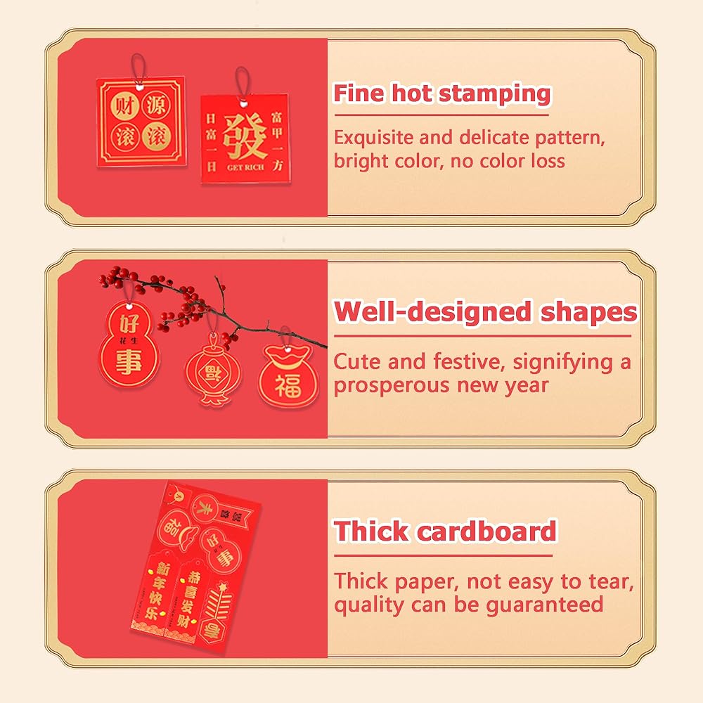 مواد موثوقة: هذه الديكورات الصينية مصنوعة من ورق متين عالي الجودة، طباعة حمراء صينية وليس من السهل أن تتلاشى، قابلة لإعادة الاستخدام وخفيفة الوزن، سطح أملس يجعلك تشعر بالراحة