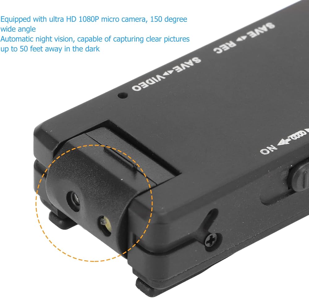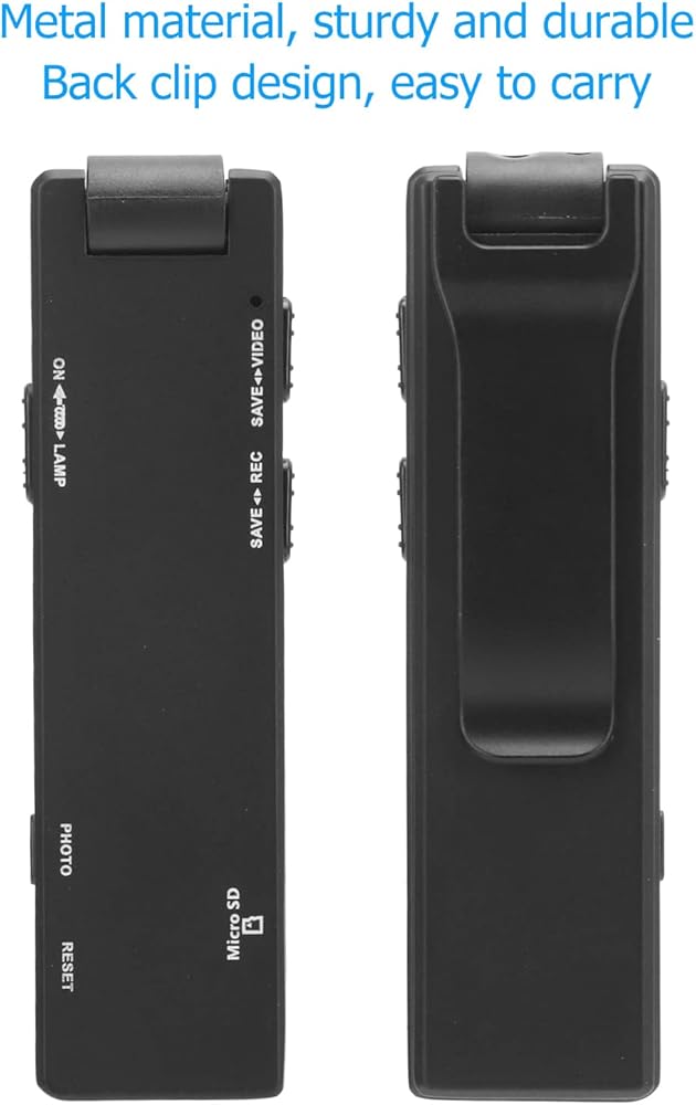【تصميم مشبك خلفي】: تتميز كاميرا قلم التسجيل بتصميم مشبك خلفي قوي، والذي يمكن تثبيته في الياقة والجيب والمجلد وغيرها من الأماكن، ويمكن وضعه في أي مكان للعمل من أجلك. الكاميرا مناسبة للمنزل والمكتب (يتم دعم بطاقة الذاكرة الصغيرة 32 جيجا على الأكثر).