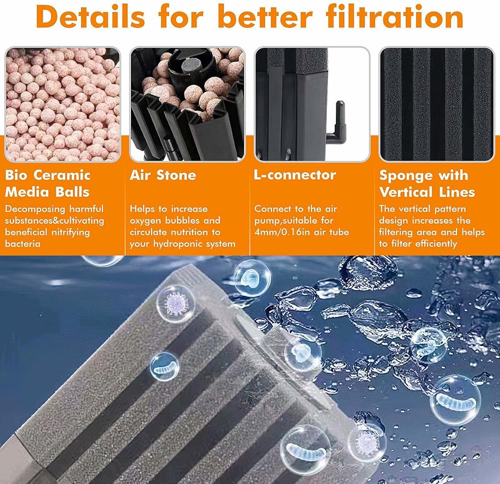Safe and Quiet Microporous biochemical filter sponge without sucking up your fish and very quiet.