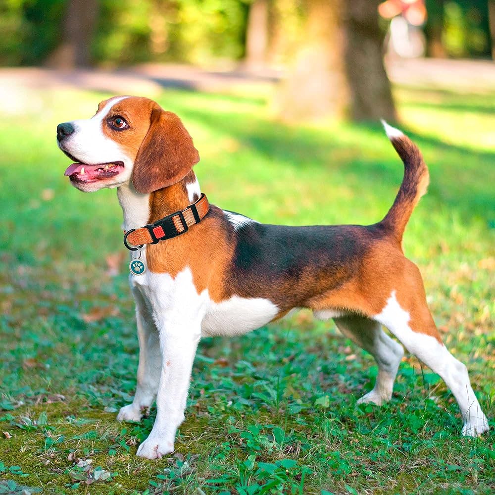 الحجم: 4 أحجام متاحة تناسب جميع أنواع الكلاب. يرجى قياس محيط رقبة كلبك باستخدام شريط قياس ناعم لاختيار المقاس الصحيح. الطوق لا يتمدد من تلقاء نفسه، يرجى التأكد من ترك مساحة للتنفس بين الطوق ورقبة الكلب