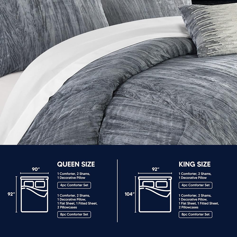 صنع معك في الاعتبار - كل مجموعة مصنوعة بمراقبة صارمة للجودة وتأتي مع لحاف مقاس كينج وزينة بتصميم متناسق ووسادة رمي مزخرفة بالترتر