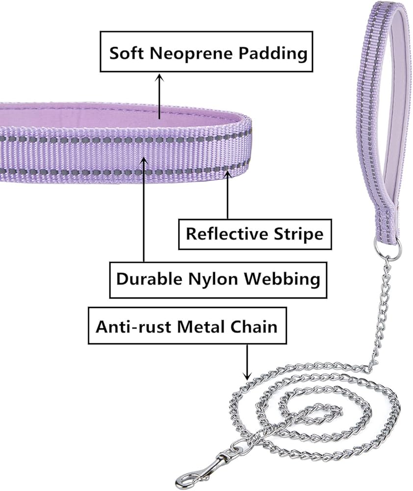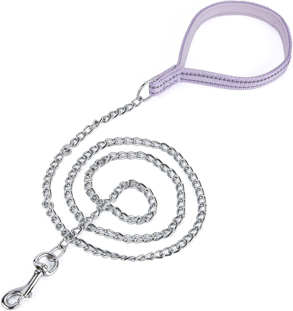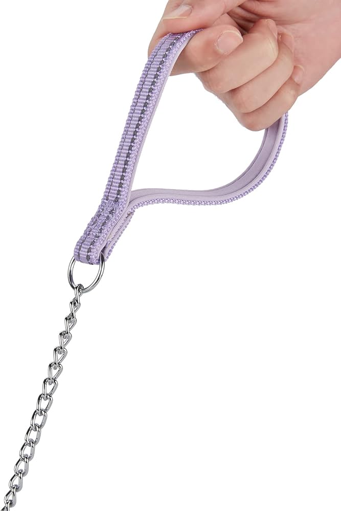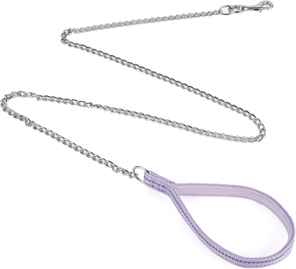 بيتيري سلسلة معدنية مقاومة للمضغ، مقبض من النايلون مع بطانة ناعمة من النيوبرين وشريط عاكس للكلاب متوسطة الحجم. (مقاس M، ارجواني)