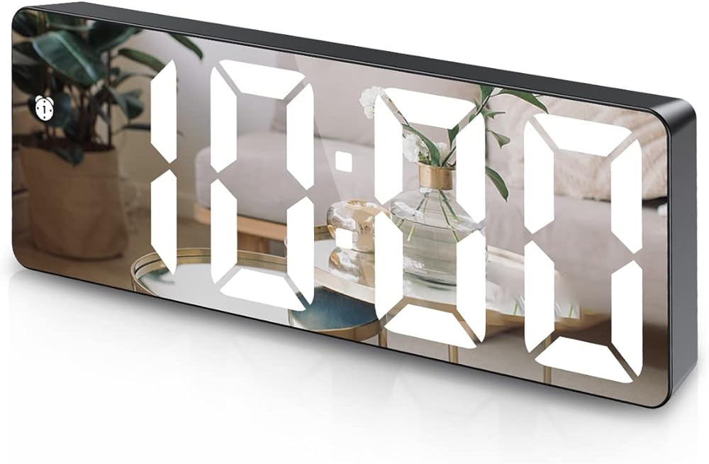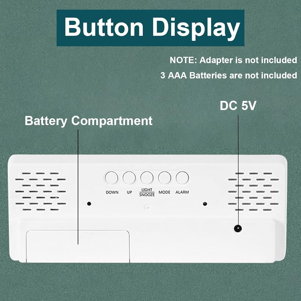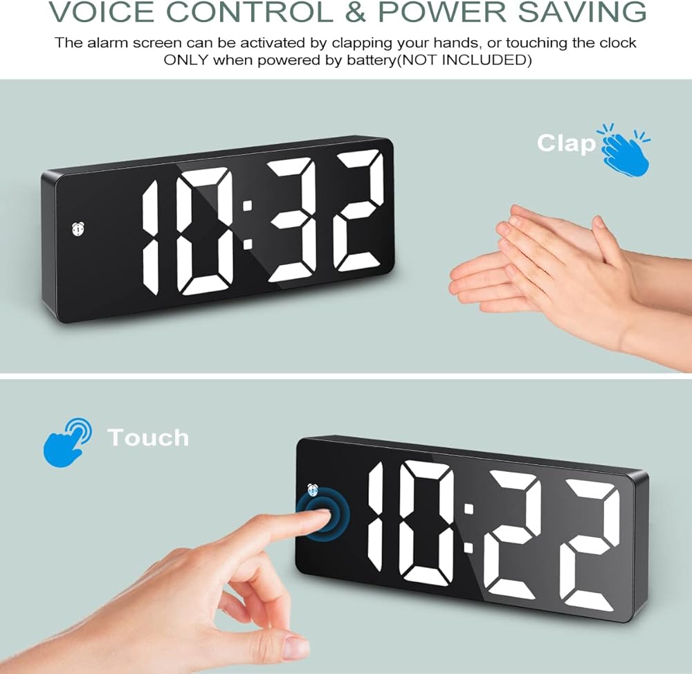Product Description: The stylish digital clock is a combination of alarm clock, time display, temperature display and other functions, make it a best gift for Christmas, birthday. Features: 3 Levels Adjustable Brightness, low, medium, bright light, anti-disturbance mode at night Easy Snooze Function, allows you to sleep for more than 1-60mins. 2 Power Modes, 1. Battery supply mode, the screen will turn off automatically after 16s. 2. USB power supply mode, the screen will remain on. Temperature Display, press the MODE button to switch the following order. Clock mode-Date mode-Temperature mode. 3 Working Modes, 1-5, Monday to Friday; 1-6, Monday to Saturday; 1-7, every day. Cycle display function, in temperature mode, press and hold the MODE button to hear Bi once, switch the LED to display time, date, and temperature. Specification: Working Voltage: 5V Dimensions: 17 x 7.4 x 4cm Time Display: 12/24 hours Note: 1. AC adapter is not included. 2. If you use a cable for power supply, the clock will always be on. 3. When powered by batteries (not included), it will automatically enter power saving mode and only keep time memory. 4. The "colon" between the hour and minute display flashes continuously. Package Included: 1 x LED Digital Alarm Clock 1 x USB Cable 1 x User Manual
