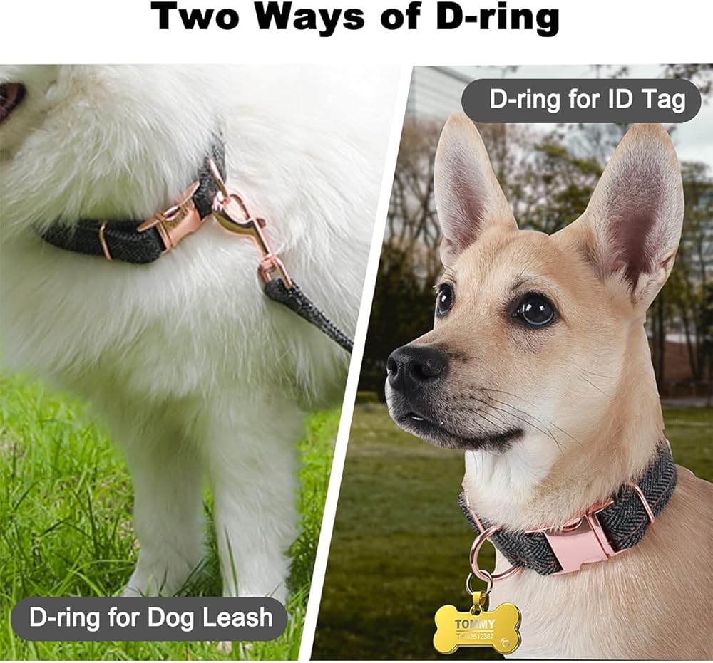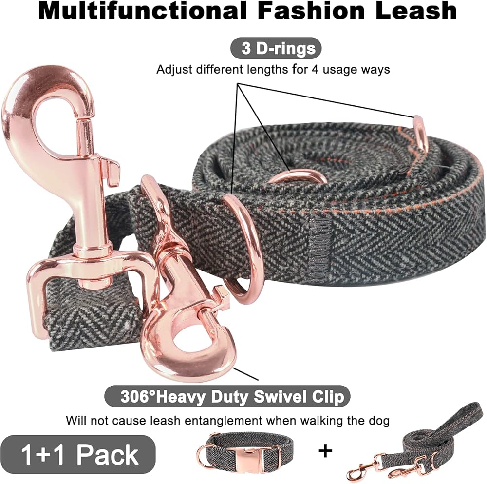 • مادة متينة وعصرية - مجموعة طوق ومقود الكلب هذه مصنوعة من القطن المقاوم للتمزق وممزوجة بالداكرون لزيادة المتانة وجعلها أكثر نعومة وراحة في الإمساك بها. بالمقارنة مع مقاود وأطواق الكلاب العادية، فإن قوتها وسمكها أعلى مرتين تقريبًا.