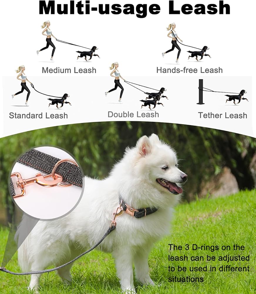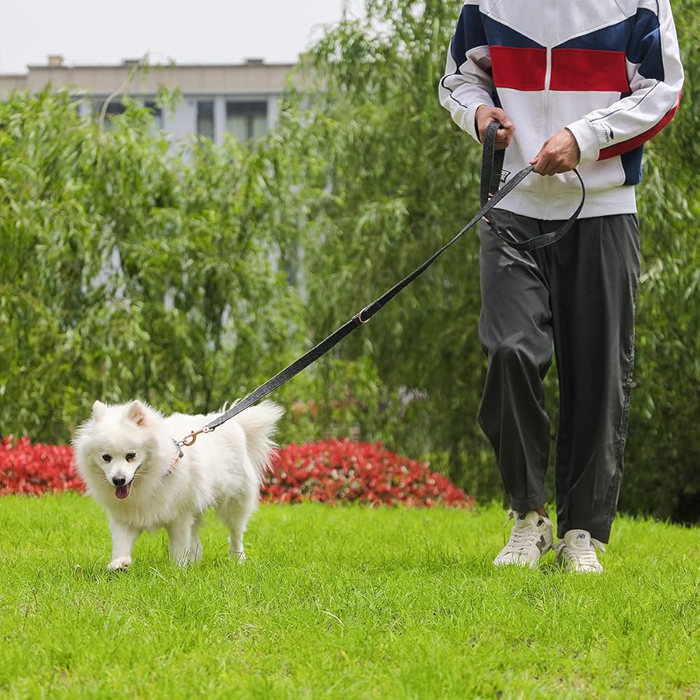 • مجموعة مقود وطوق للكلاب متعددة الوظائف - لا يمكن حمل مقود الكلاب هذا يدويًا أو ارتداؤه على جسمك/كتفك فحسب، بل يمكن أيضًا أن يكون الحبل الثابت عندما تحتاج إلى المغادرة أو ترغب في تحرير يديك. مجموعة متنوعة من طرق الاستخدام لتلبية احتياجاتك المختلفة.