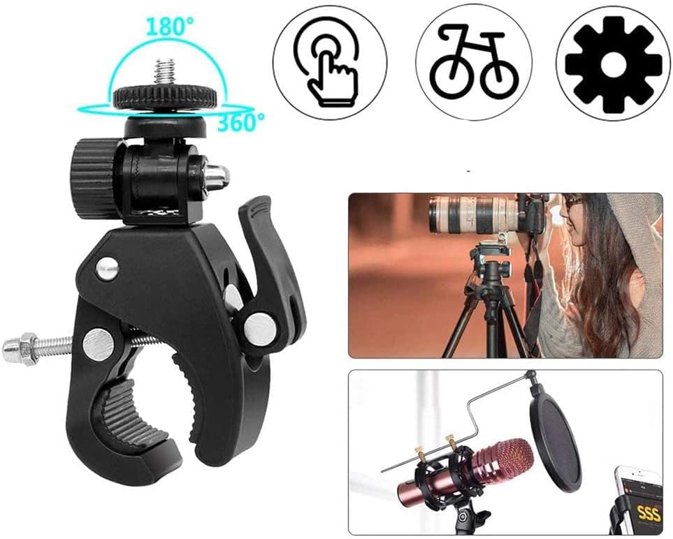 • حامل دي اس ال ار للدراجة يدور 360 درجة، أقصى حجم مفتوح 45 ملم، يمكن تركيبه على قضبان بقطر 17-35 ملم، مثل الحامل ثلاثي القوائم وقضبان الميكروفون والدراجات النارية والدراجات وما إلى ذلك.