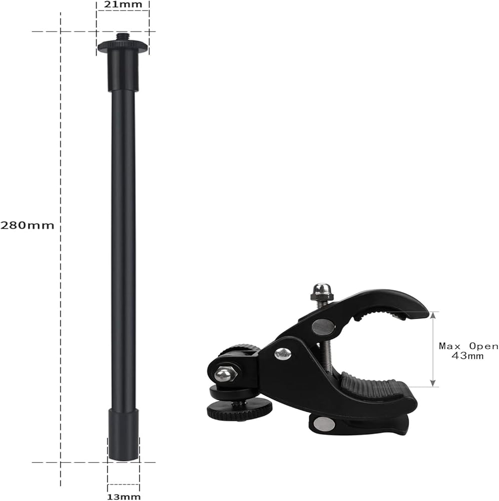 حامل كاميرا بعنق الاوزة مع مشبك تثبيت على الدراجة وذراع كاميرا مرن 11 انش بحد اقصى 2 كغم ودوران 360 درجة لكاميرا الاكشن وكاميرا المراقبة يوفي S40