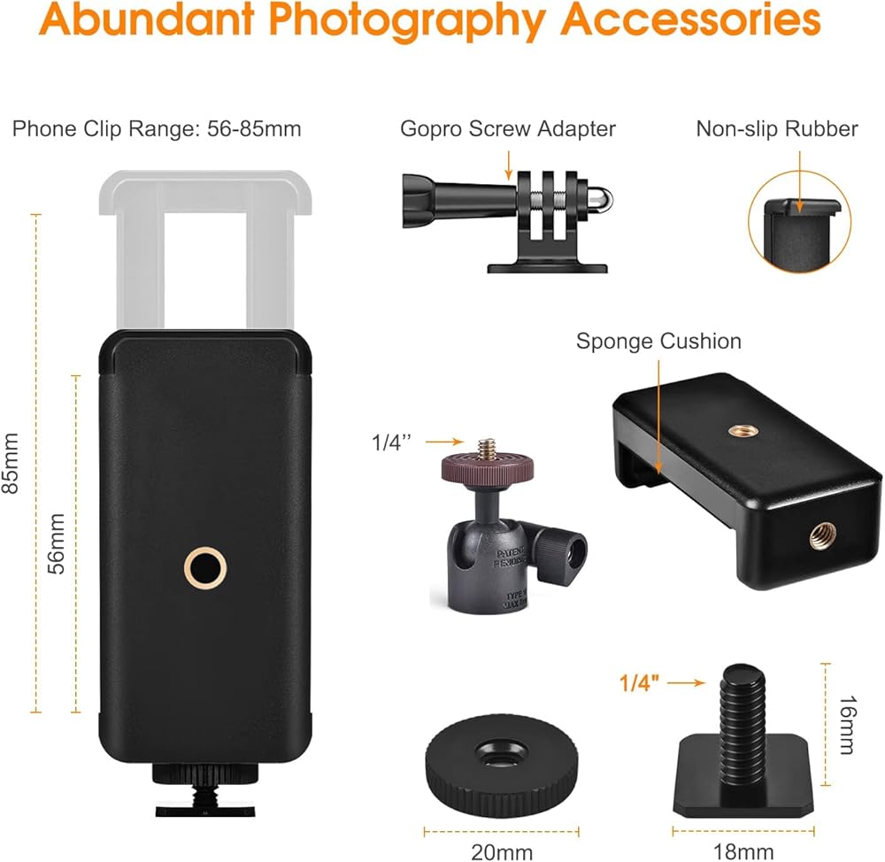 • قوية ومتينة وآمنة، مصنوعة من مواد عالية الجودة، قوية ومتينة. يزيد تصميم البساط المضاد للانزلاق من الاحتكاك ويمنع سقوط الجهاز بسهولة، ويحمي سطح جهازك، ويقلل من التلف المحتمل عند الاتصال.. استخدامات واسعة. تتضمن العبوة ذراع تمديد مرن 1/4 انش، حامل دراجة، رأس كروي صغير، مشبك هاتف، حامل محول متوافق مع فتحة خيط 1/4.