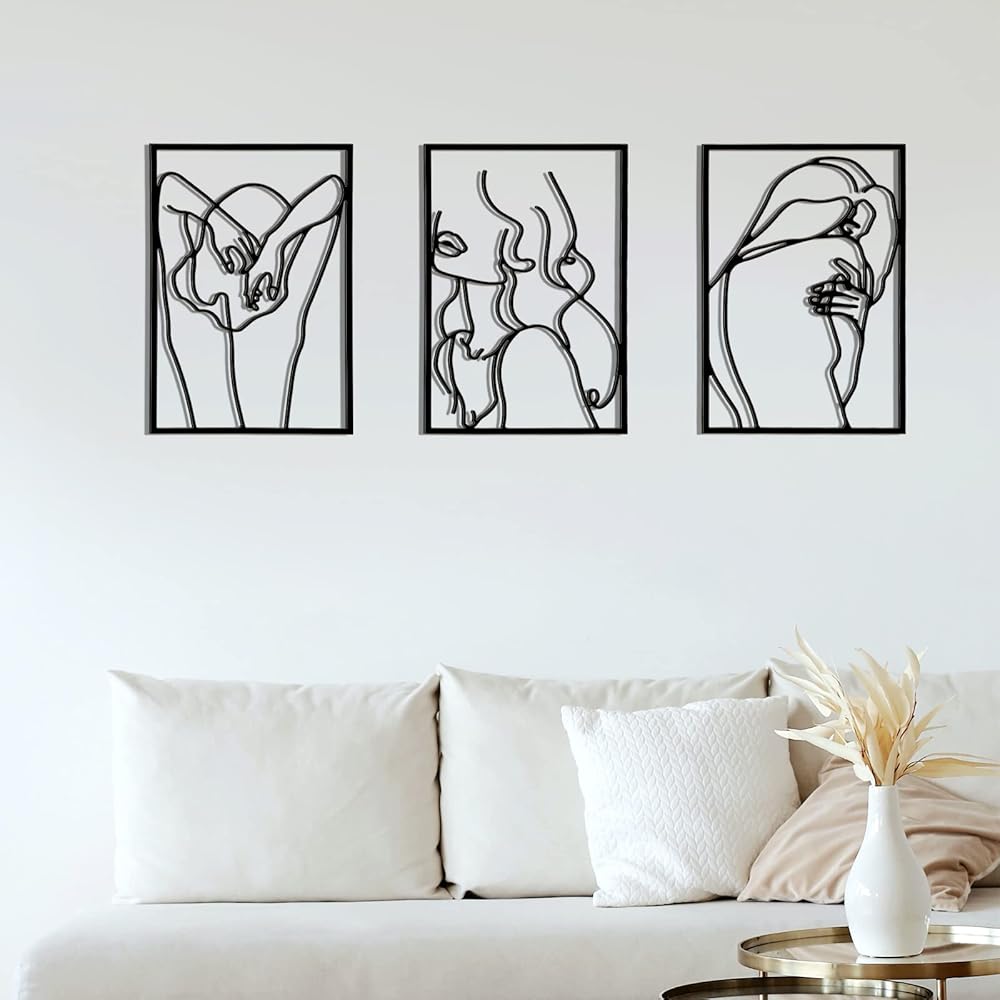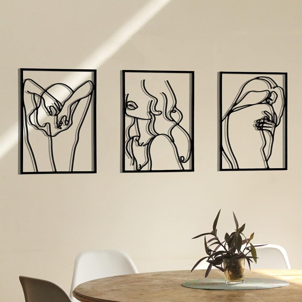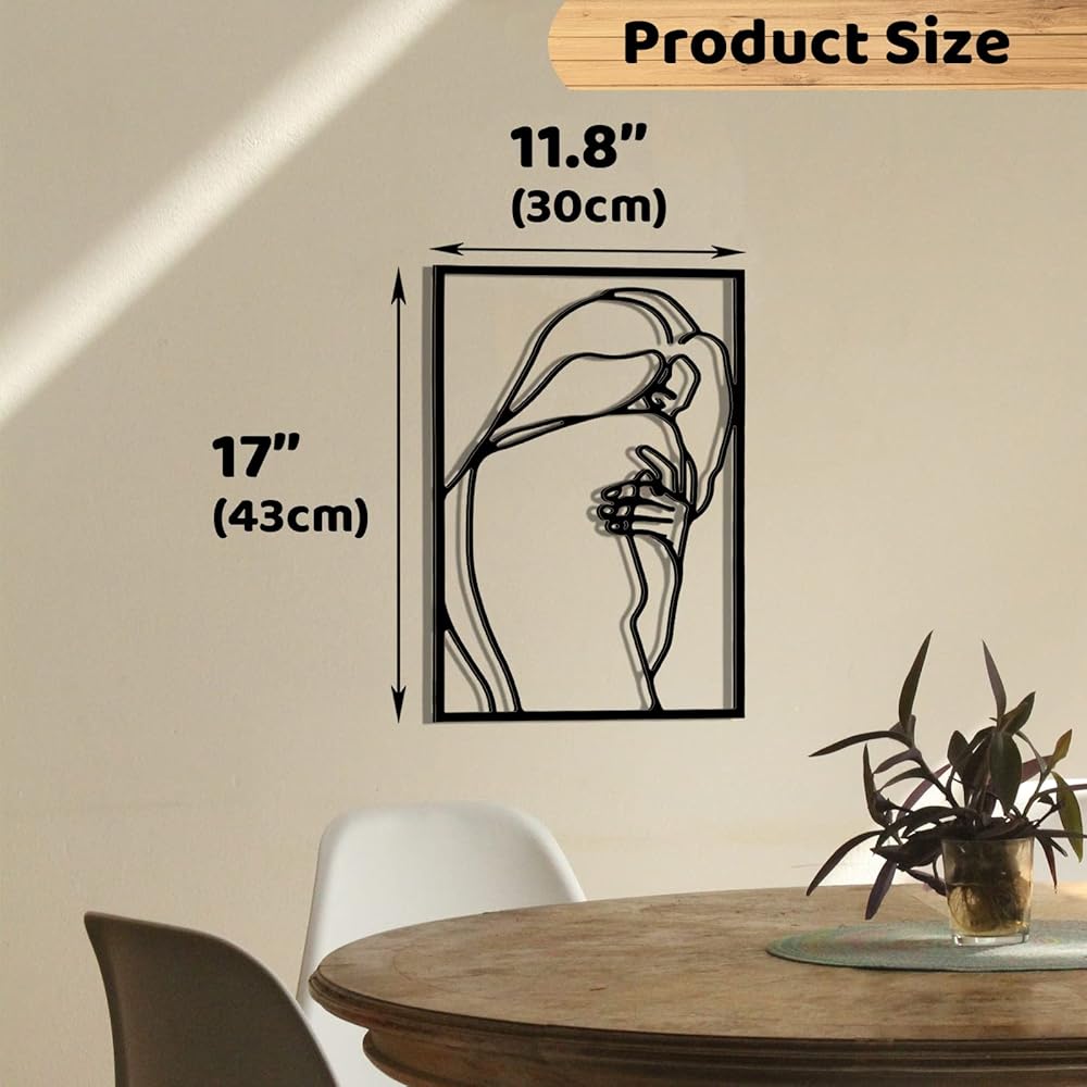 تصميم بسيط ومجرد: هذا الفن المعدني عبارة عن ديكور جداري معدني مطلي بمسحوق إلكتروستاتيكي مقاوم للصدأ، وتصميم بسيط ومجرد لجسم أنثوي. إنها رائعة بمجرد إعدادها وستجذبك بمجرد دخولك الغرفة.