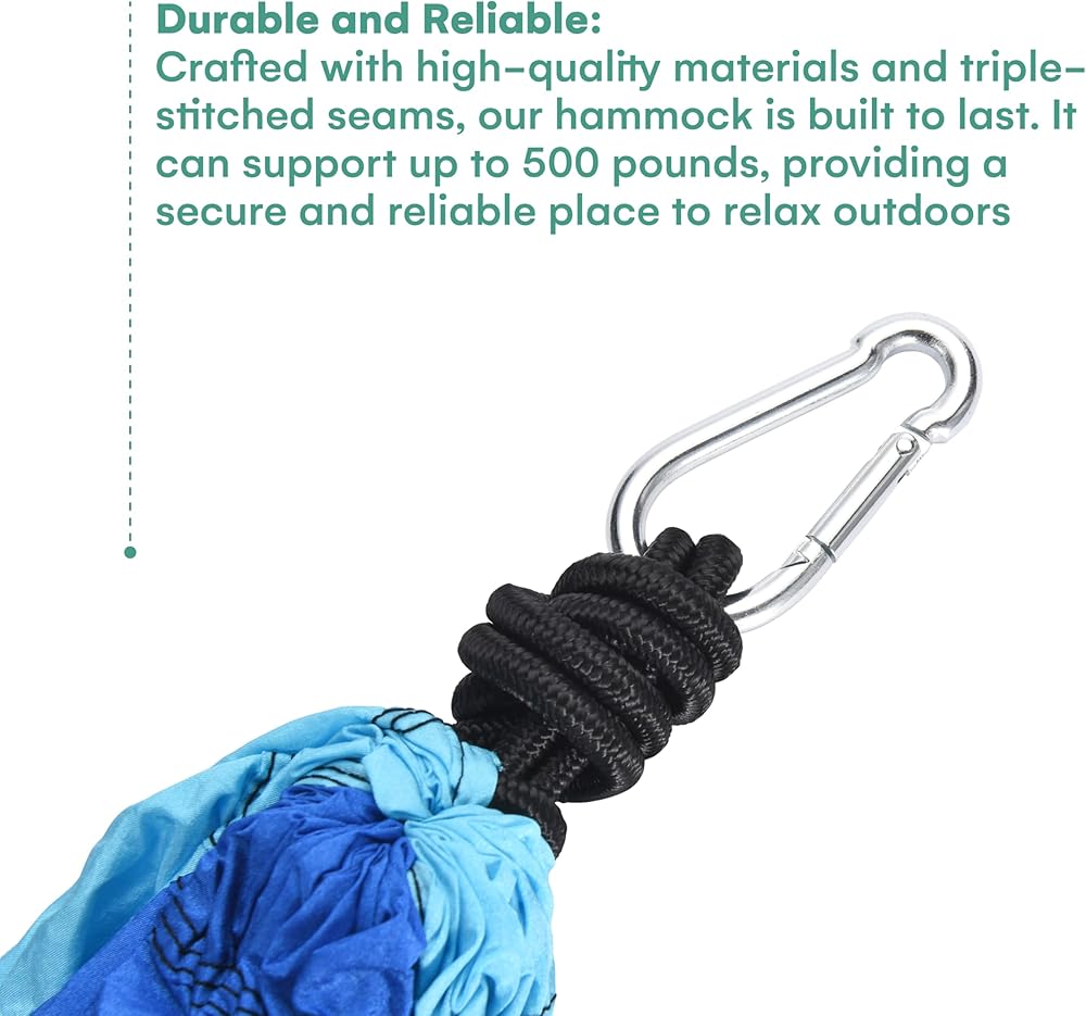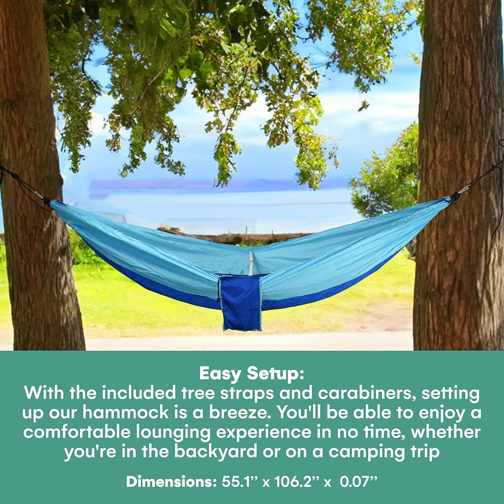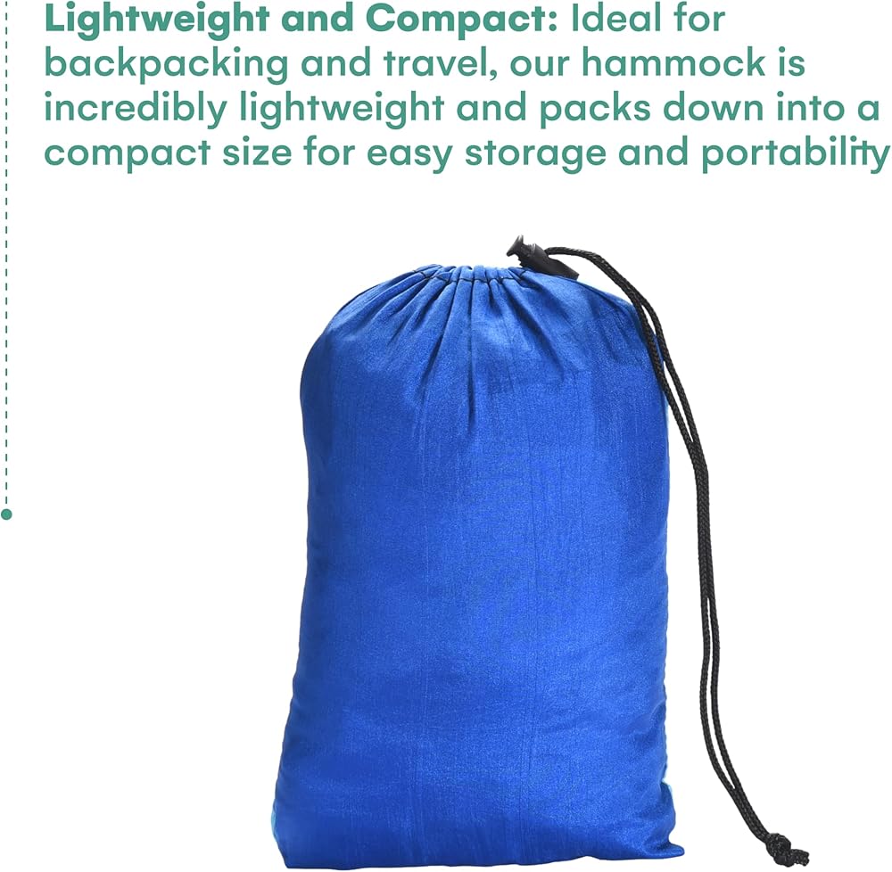 اوتليري ارجوحة للتخييم - ارجوحة محمولة مع احزمة شجرة وحلقات تعليق - ارجوحة متينة ثلاثية الخياطة للاستخدام في الهواء الطلق لحقيبة الظهر او التخييم او الاسترخاء في الفناء الخلفي - ازرق