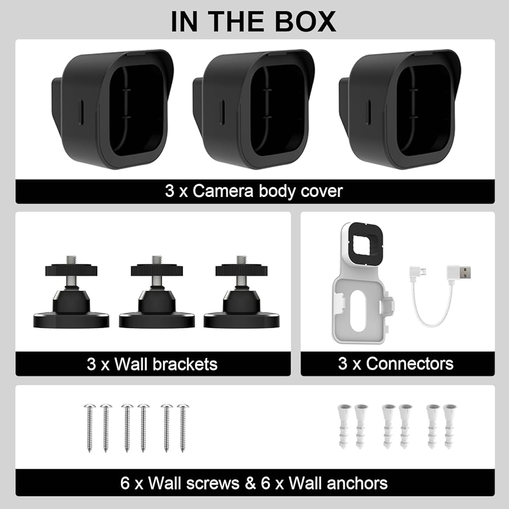 • 【تحتوي العبوة على: تحتوي على: 3 عبوات × غطاء بلاستيكي، 3 عبوات × حامل على الحائط للوميض في الهواء الطلق 4، 1 حزمة × حامل حائط على المخرج لوحدة مزامنة الوميض 2، 1 × كابل USB قصير، مجموعة واحدة × ملحقات براغي. (لا يتم تضمين الكاميرا والوحدة.)