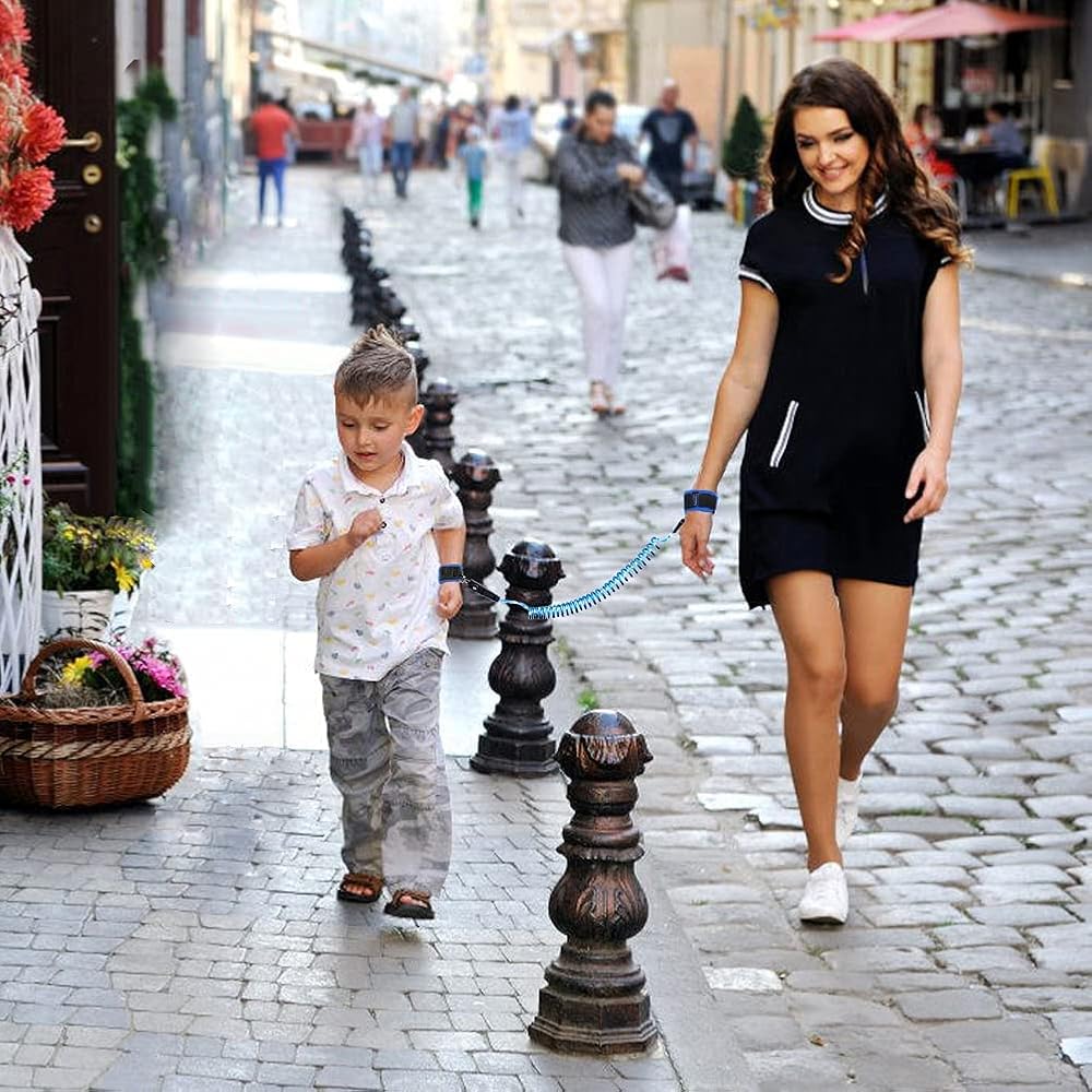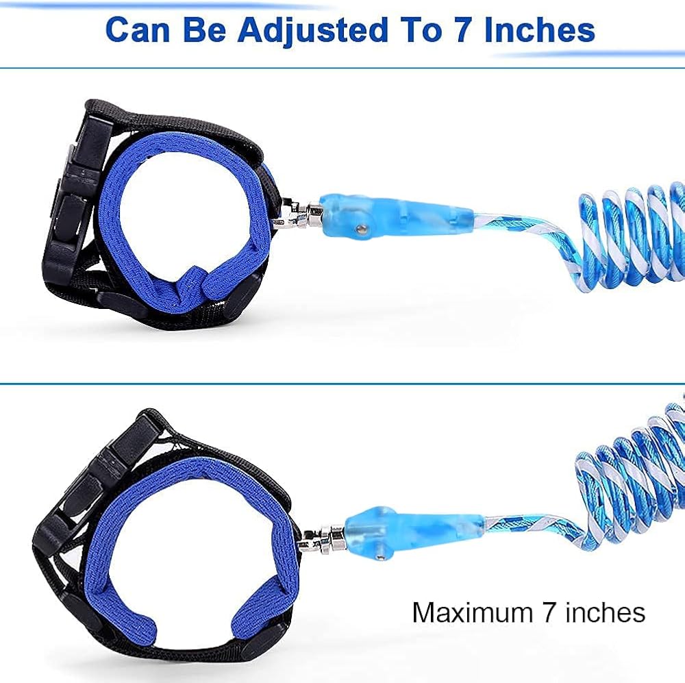 الحجم: كل ما عليك فعله هو توصيل الأساور بأيدي البالغين والأطفال على التوالي. يمتد السلك القابل للتمديد حتى 2.5 متر، ويمكن تعديل حجم قطر حزام المعصم لجانب يد الأطفال (الجانب الأصغر) حتى 7.5 سم. توفير المزيد من الحرية والمساحة مع القدرة على ضمان سلامة الأطفال