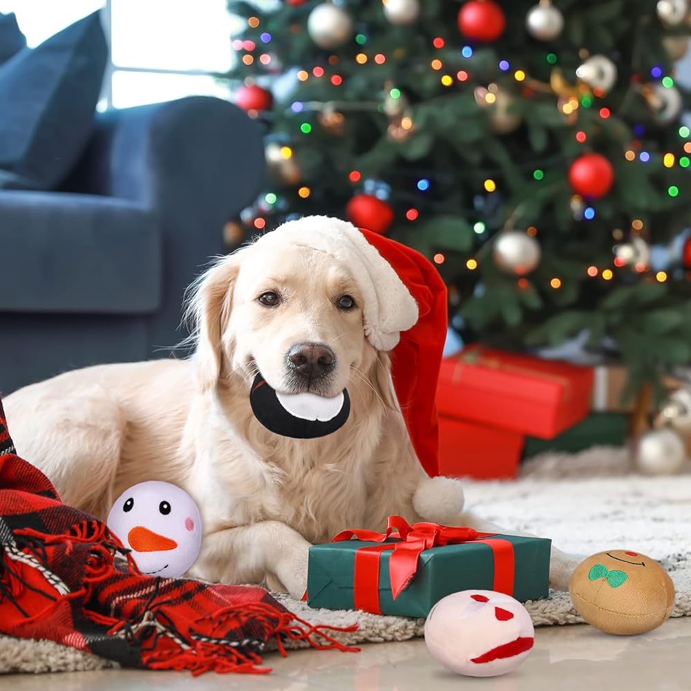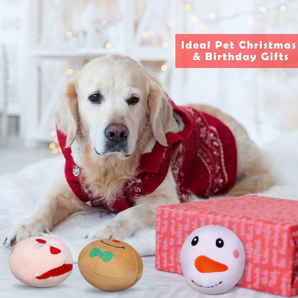 Premium material: Christmas plush dog squeaky toys are made of high quality plush material, super soft, durable and odorless; you will have no worry about hurting your dog's teeth; the Christmas dog squeaky toys can satisfy your dog's natural chewing desire, helping to cultivate its healthy teeth chewing habbit