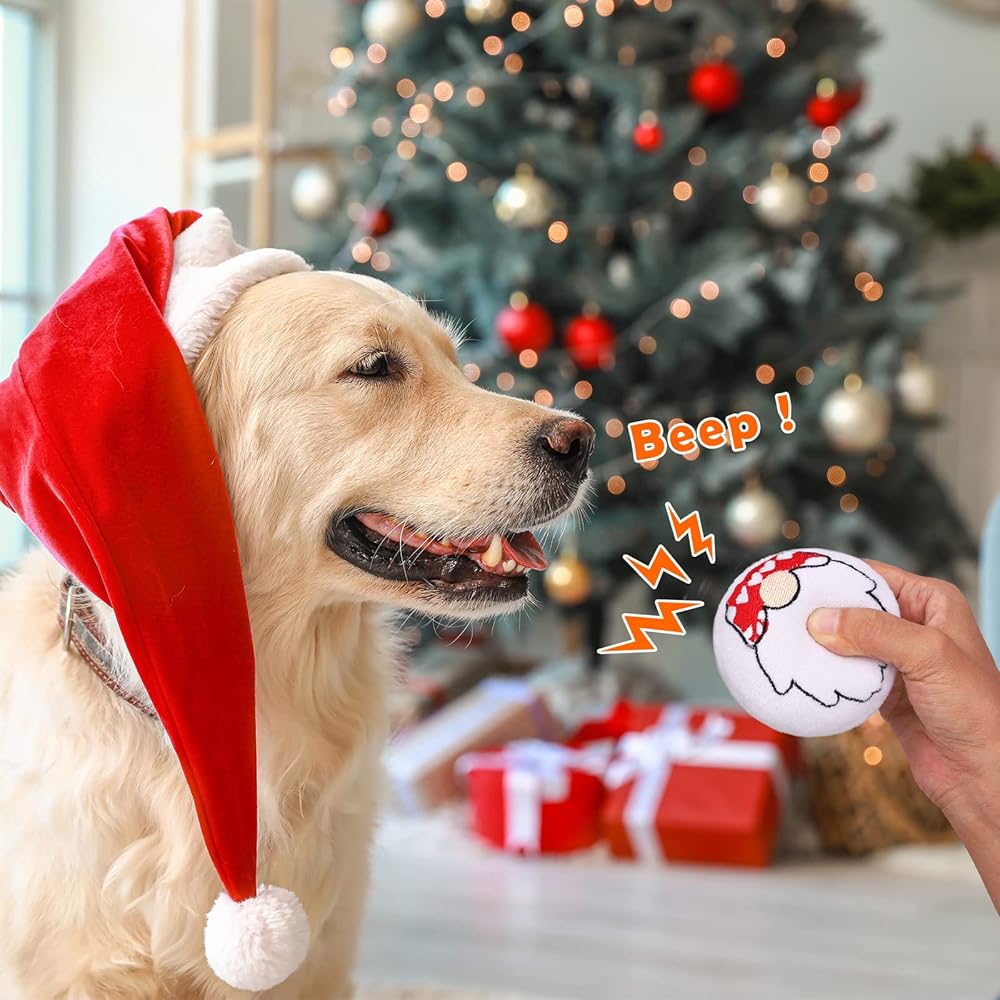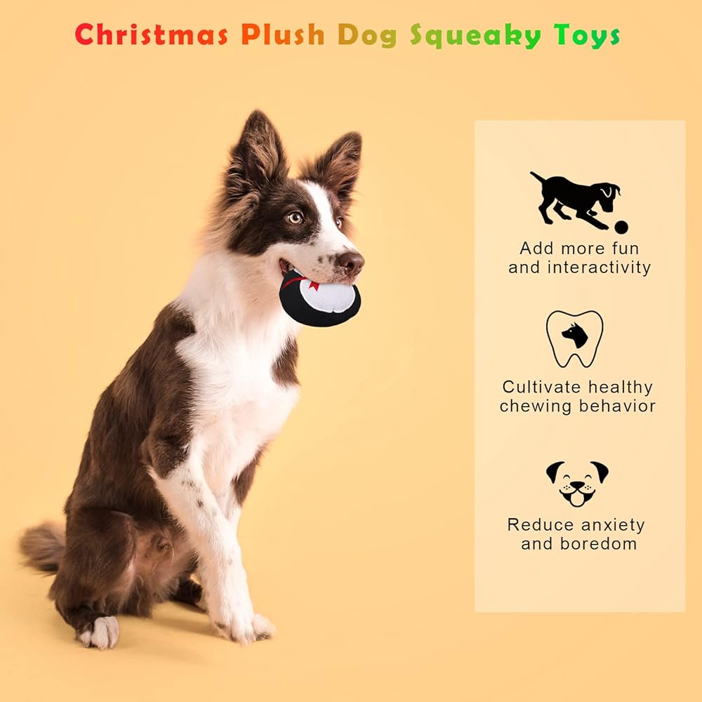 Elaborate design: the classic Christmas elements matched with traditional Christmas colors can make your Christmas puppy interactive toys unique and attractive; when your dog is chewing the plush dog squeaky toy, it will be making a squeaking sound because there is an airbag inside each plush toy; the squeaky sound makes the dog chew toy more attractive