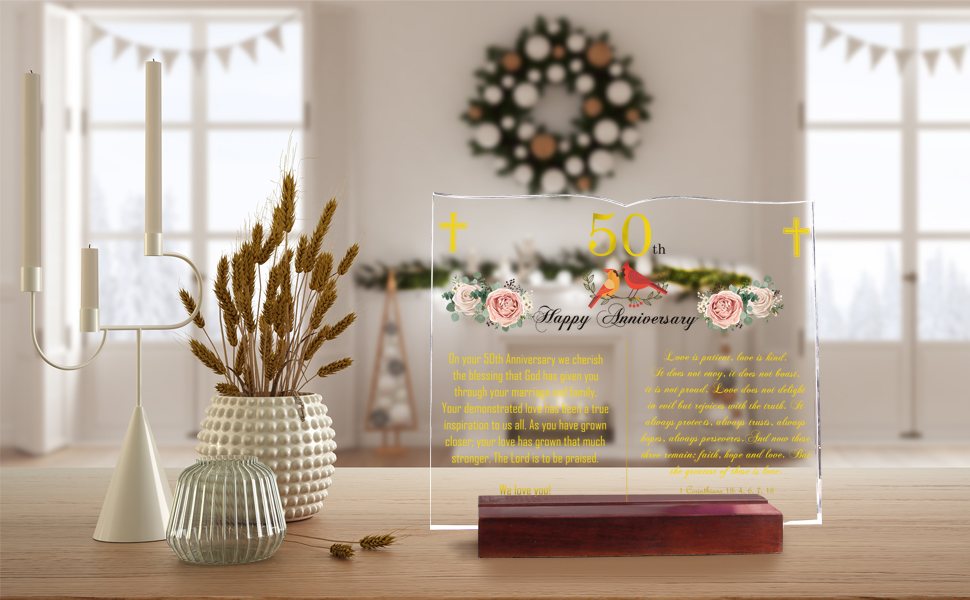 هدايا الذكرى السنوية 50 للزوجين: بقياس 7.87 × 6.69 × 0.8 بوصة، هذه الزخرفة هي الحجم المثالي للعرض على المكتب أو الرف أو الرف. إنه بمثابة تذكير يومي بالحب والإيمان للأزواج.