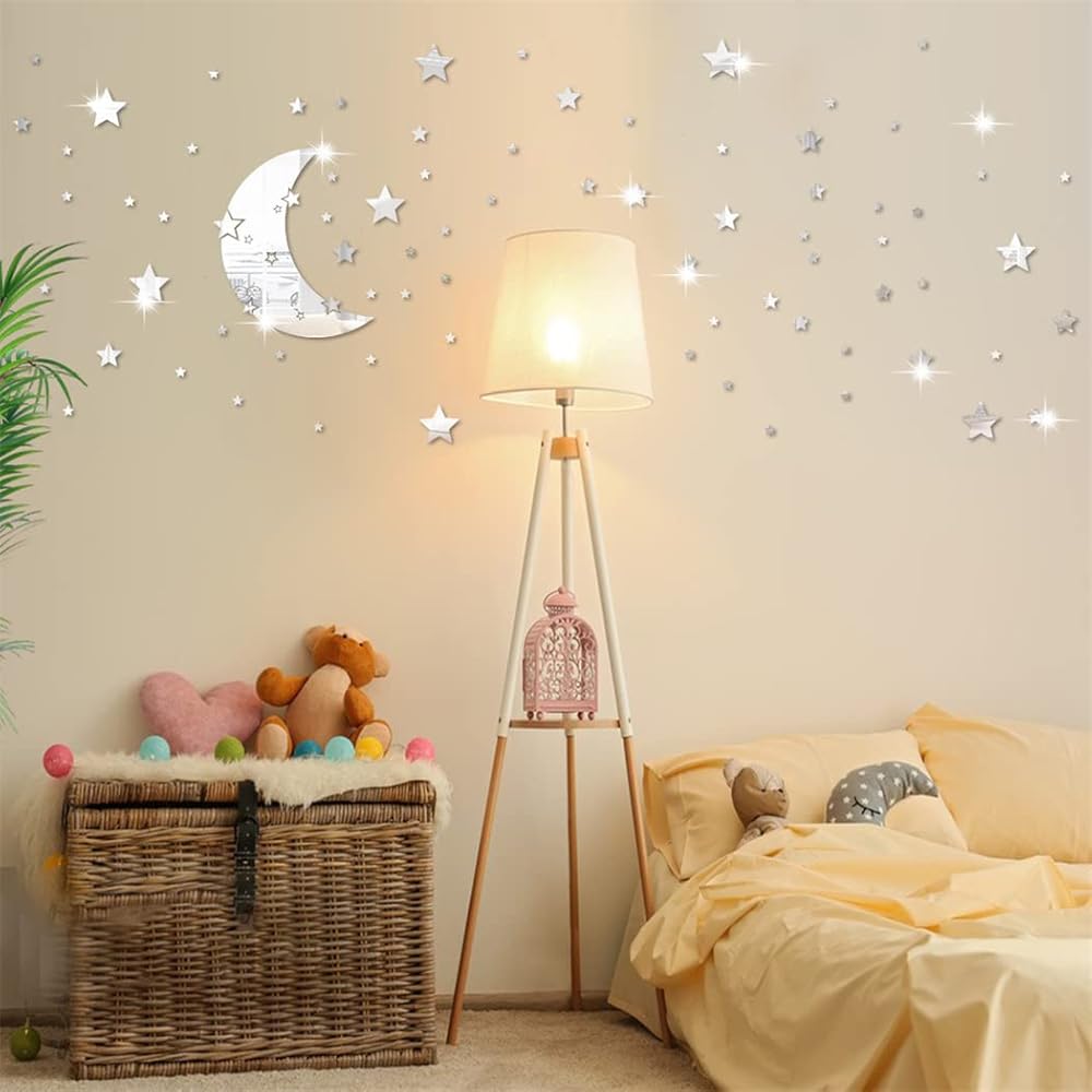 💖 Whether you are looking for your child's bedroom decoration idea, birthday gift, holiday gift, or just looking for a baby's wall decoration, the moon and stars mirror wall sticker is a good choice!