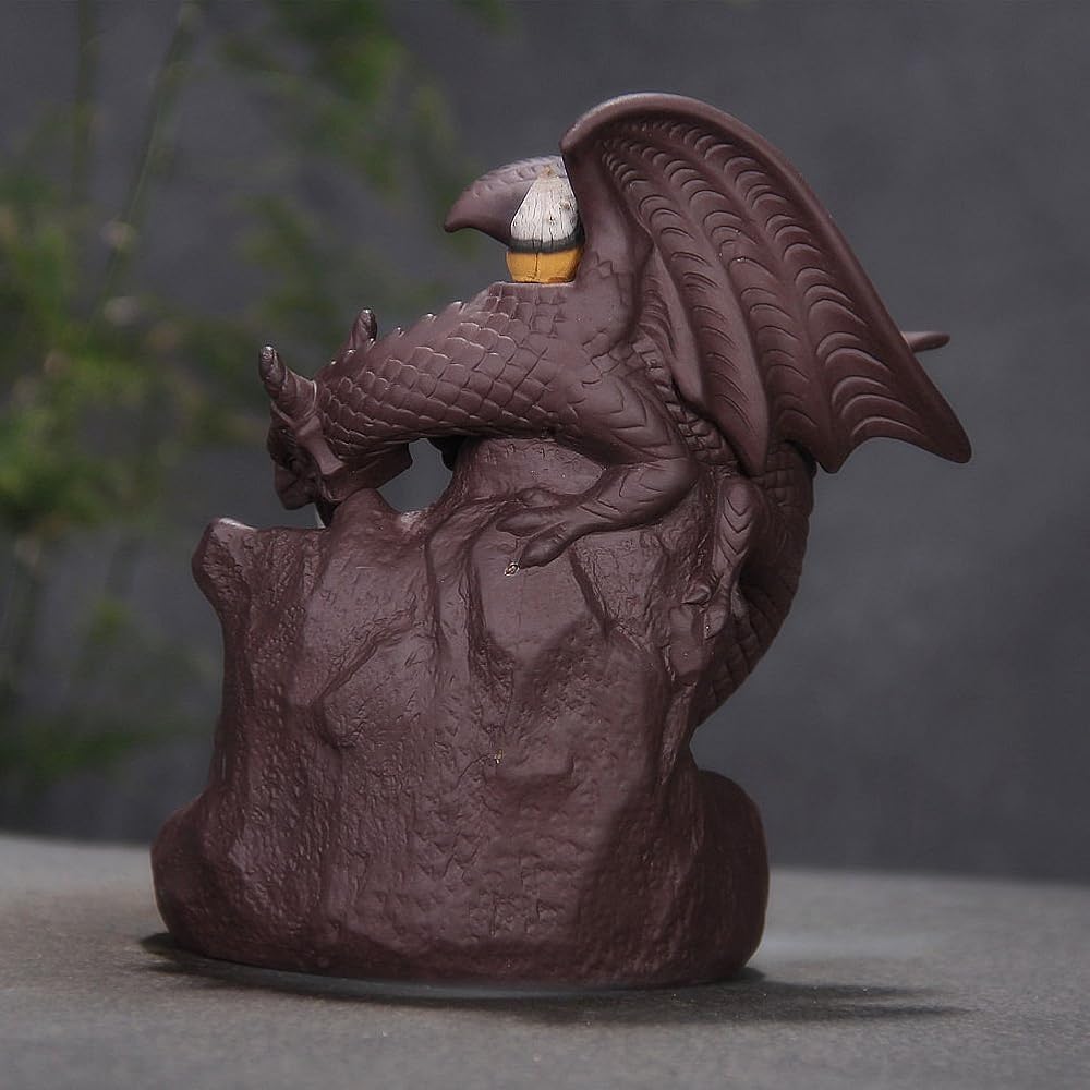 (أسود أحمر طائر التنين الذاب) - حامل بخور من السيراميك يدوي الصنع من OTOFY ، مبخرة بتدفق خلفي ، حامل مخروط ، ديكور المنزل هدية زينة تذكارية (التنين الطيران)