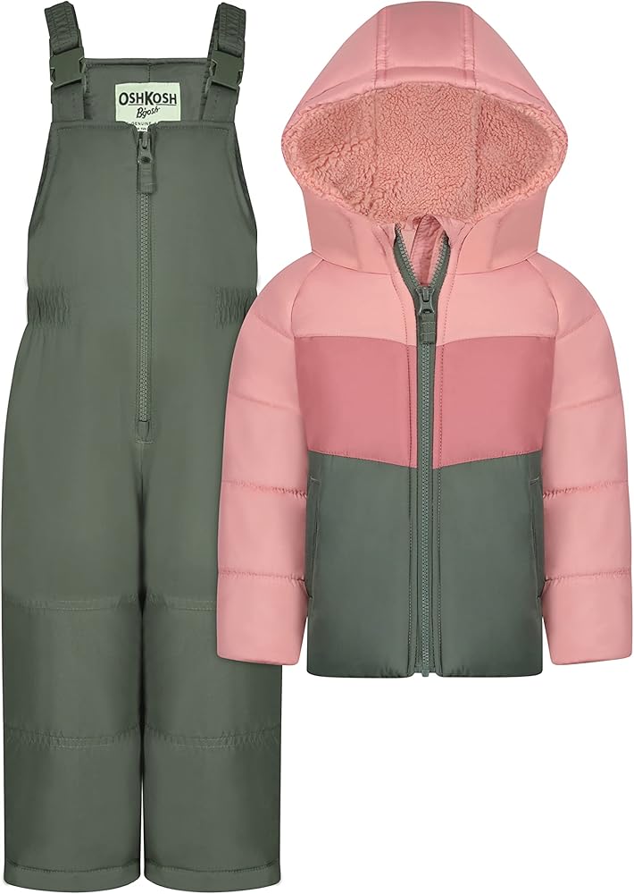 Perfect toddler girl two piece snowsuit that you and your daughter will love! Keeps them warm and dry on a cold winter day and is packed with all of the features you expect in an OshKosh B'Gosh snowsuit including a cozy fleece lined jacket and matching adjustable bib