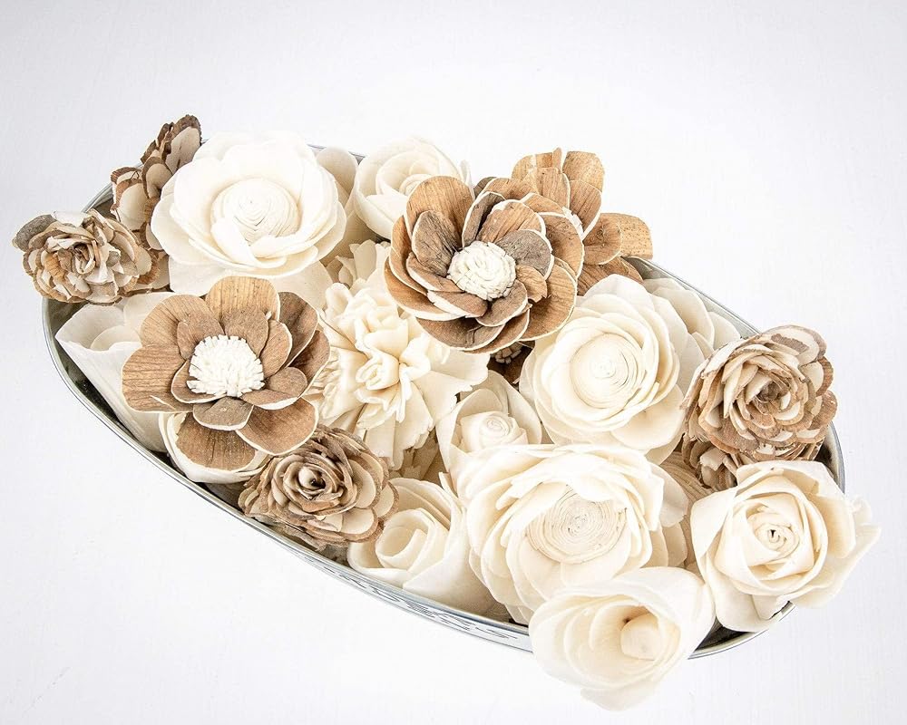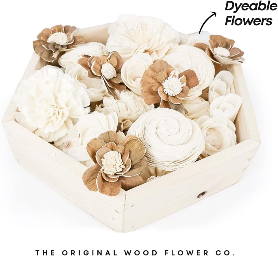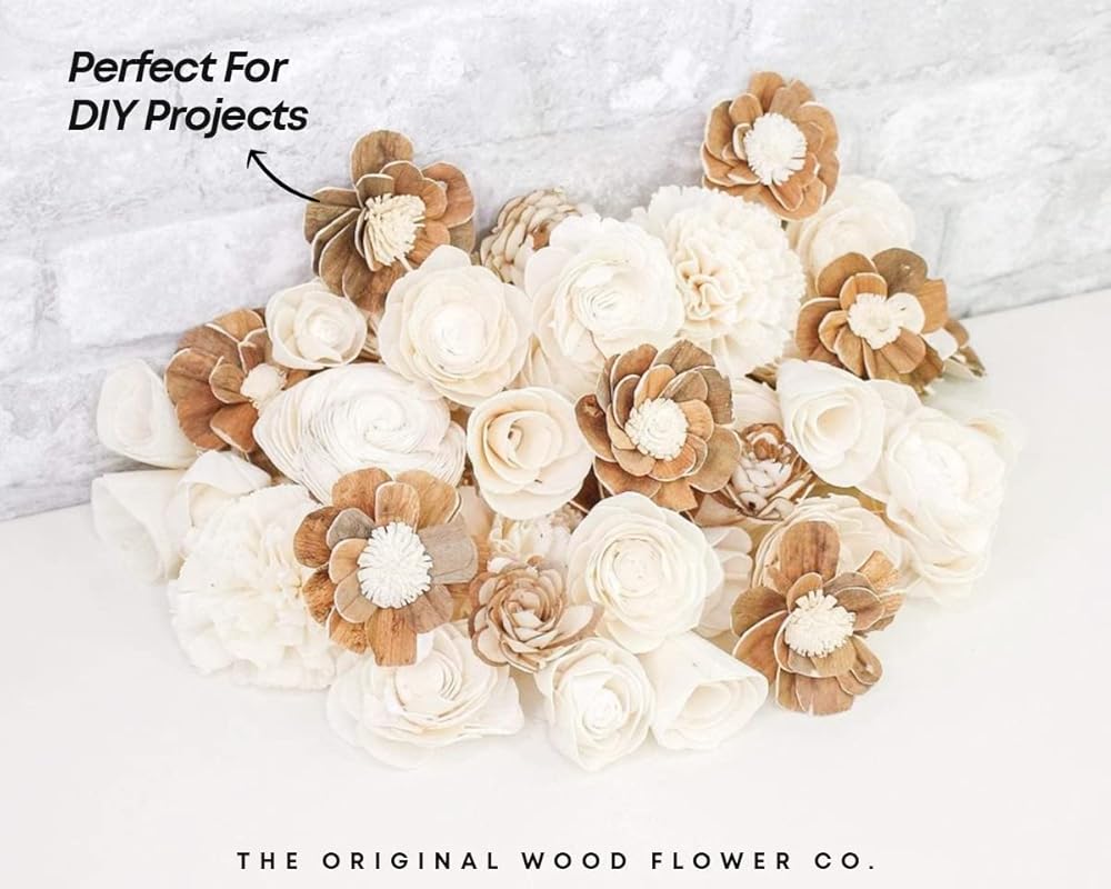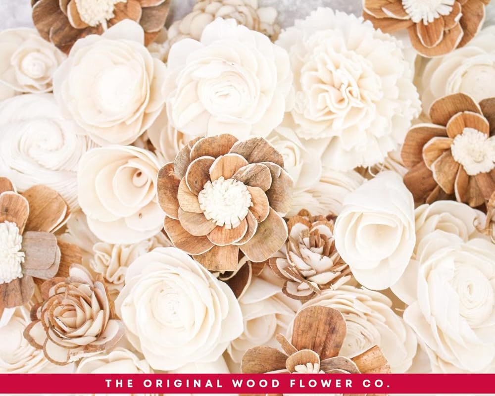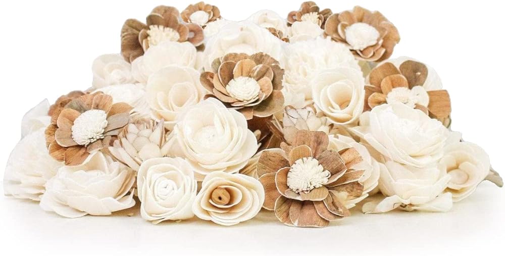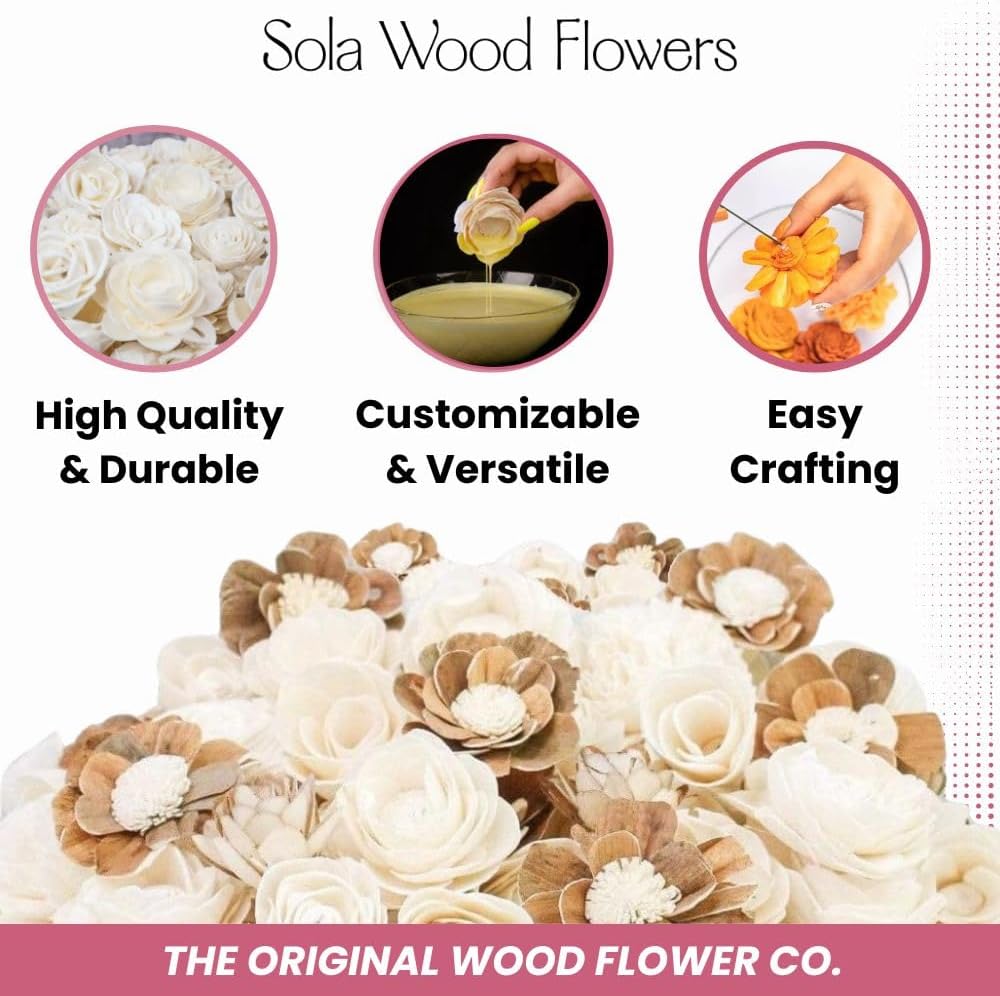 • تتميز بأنواع مختلفة من زهور خشب سولا بأحجام تتراوح من 2.54 سم إلى 7.62 سم