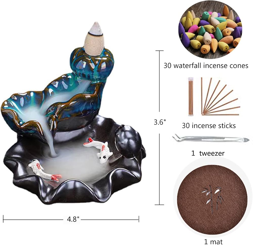 Backflow Incense Cones & Waterfall Incense Burner: The upgraded version of the incense cone has a hole at the bottom to allow the smoke generated by combustion to flow downward. The smoke flowing from the incense burner top looks like a waterfall, so it is called a waterfall incense burner. Even if there is no incense, the incense stick holder can also be used as an ornament.