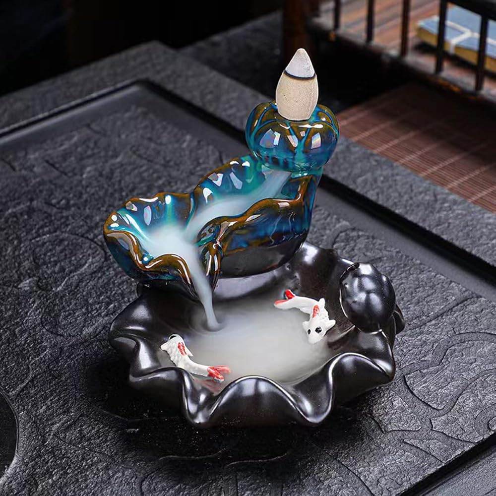 Ornamental reflux censer The smoke is very light so the best viewing effect is in a windless environment.The smoke will flow into the small pond like water. It is relaxing and quiet to stare, which can well relieve the stress and anxiety generated in life, work and study. It calms the mind, cooperates with contemplation, and enjoys the mood and happiness in the atmosphere of Zen and spiritual ascension..