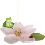 حامل بخور مبخرة على شكل ضفدع من الراتنج اللطيف من سيزيكاتو مع صينية ساكورا.