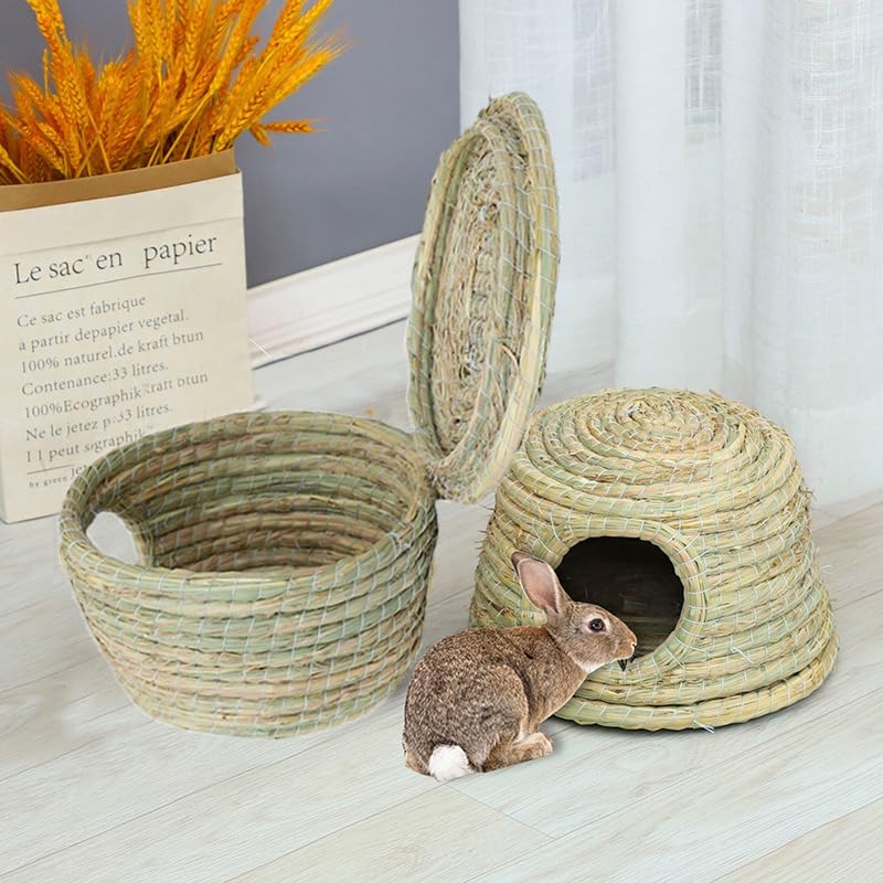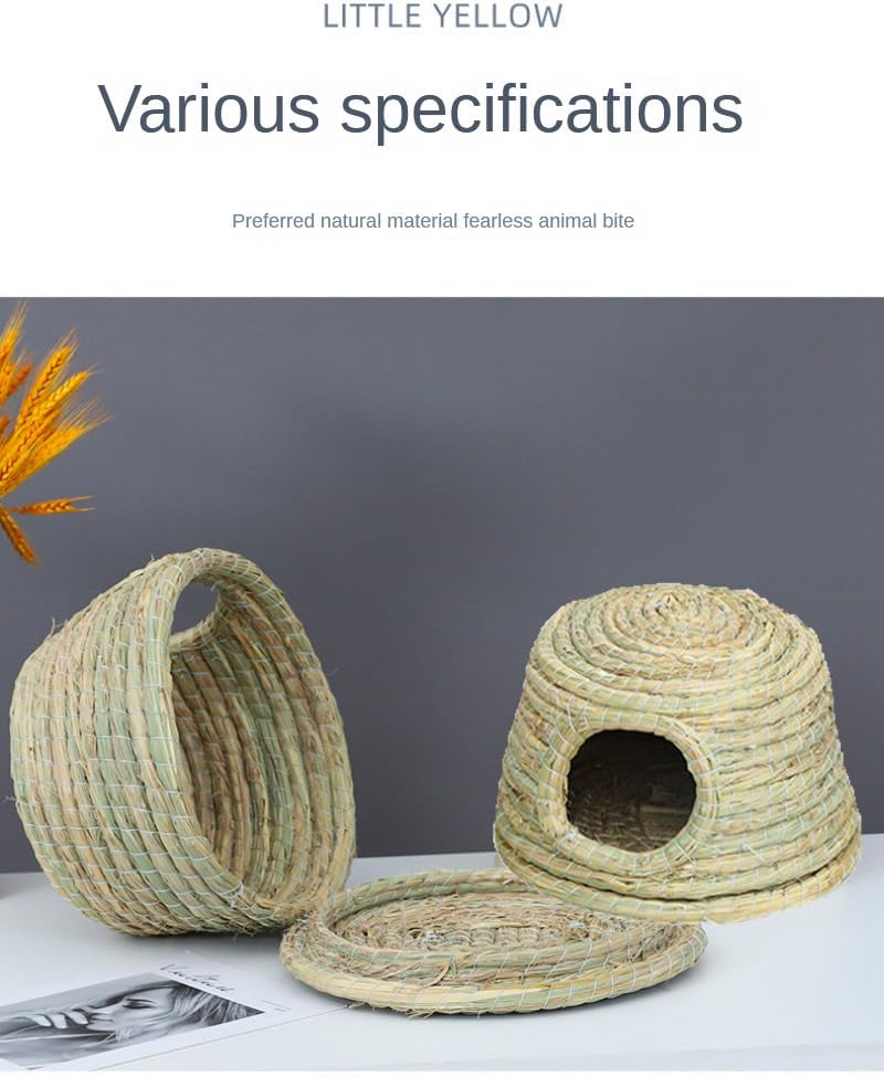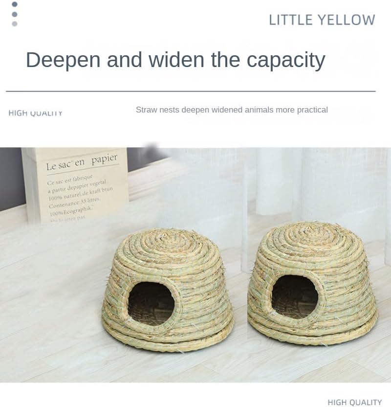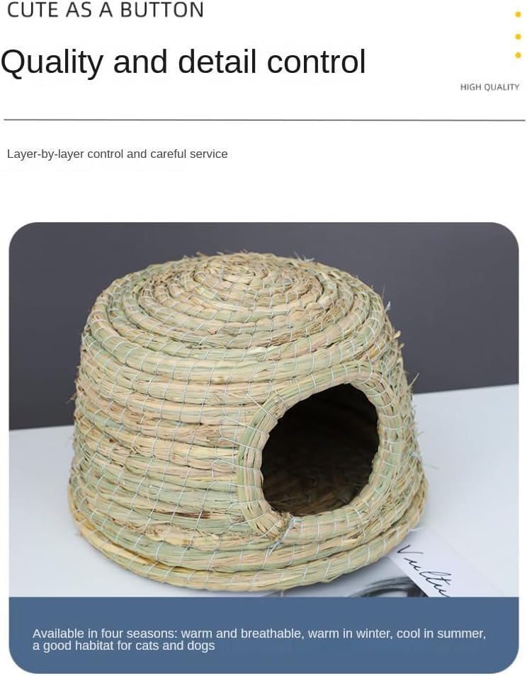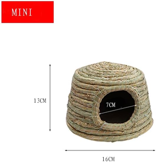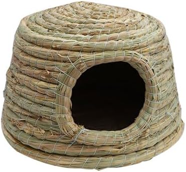 قلعة GYMT للحيوانات الأليفة بسقف من القش، كوخ عشبي منسوج يدويًا لخنازير غينيا والأرانب والحيوانات الصغيرة الأخرى - بارد في الصيف ودافئ في الشتاء (صغير)