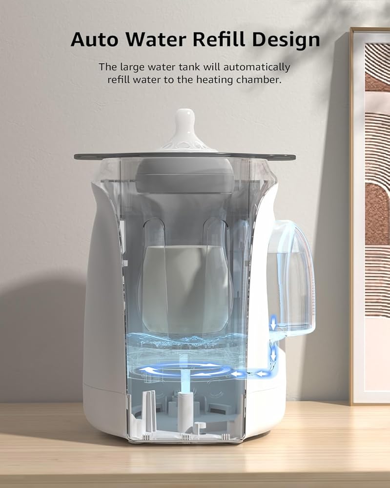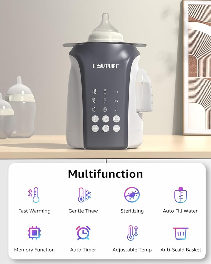 جهاز تسخين الزجاجات، جهاز تسخين سريع لزجاجات الأطفال 8 في 1 من HAUTURE لحليب الأم والتركيبة، إعادة تعبئة المياه تلقائيًا والتحكم الدقيق في درجة الحرارة، مع مؤقت، تذويب، تعقيم، الحفاظ على دفء جميع الزجاجات