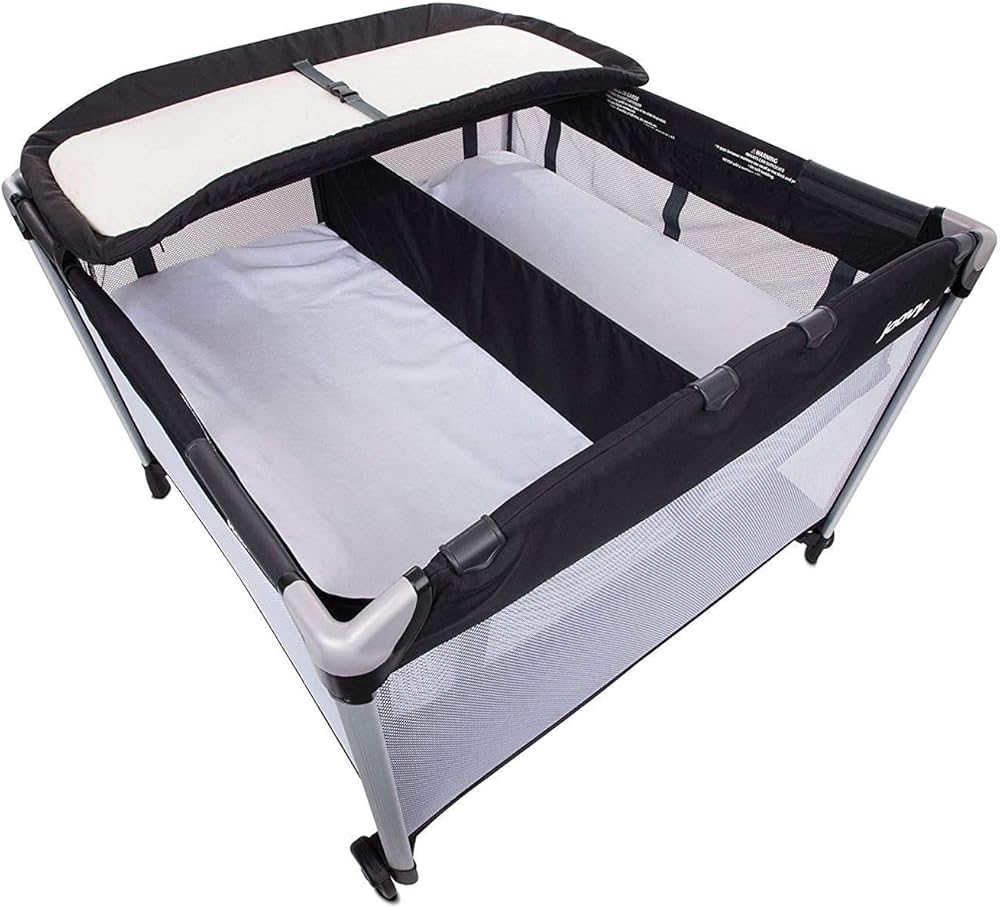 جوفي هي شركة أمريكية تصنع معدات نابضة بالحياة وعالية الجودة لعائلتك. يكمل مركز الحضانة المزدوجة رووم² من جوفي قفص اللعب روم 2 بينما يجعل الحياة كوالد أو مقدم رعاية للطفل الصغير أسهل. طاولة تغيير الحفاضات القابلة للإزالة ومهد الأطفال ومقسم قفص اللعب الاختياري مثالي لأولئك الذين لديهم توأم أو طفلين صغيرين لمشاركة مساحة مشتركة. يمكن استخدام سرير الأطفال المزدوج من روم 2 بالحجم الكامل أو بسحاب في المنتصف لإنشاء مقسم مناسب للتوأم أو طفلين صغيرين. عندما يحين الوقت للخروج من السرير، يمكن إزالة الفاصل لتحويل الغرفة ² إلى مساحة كاملة للنوم واللعب. يمكن لسرير الأطفال جوفي Twin Nursery Center من Room² أن يتحمل ما يصل إلى 30 باوند (أو طفلين بوزن 15 باوند) بسهولة، كما أن مرتبة طاولة تغيير الحفاضات مقاومة للماء وتأتي مع غطاء قابل للغسل في الغسالة لحماية طفلك الصغير من التسربات غير السارة. مقاس السرير 16.5 × 38 × 3 (العرض والطول والارتفاع).