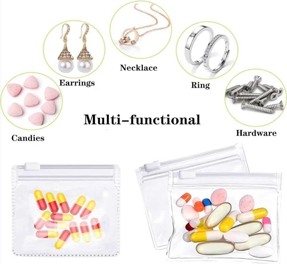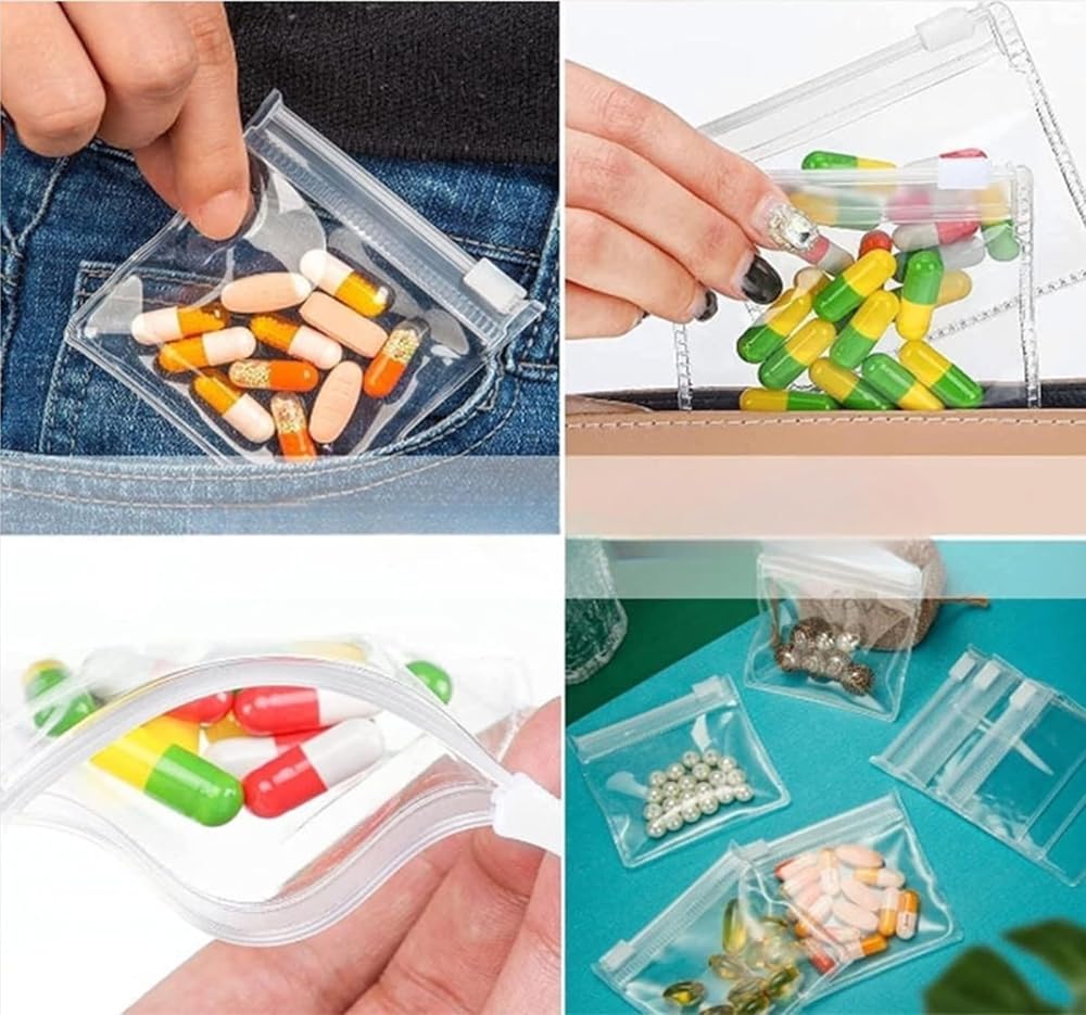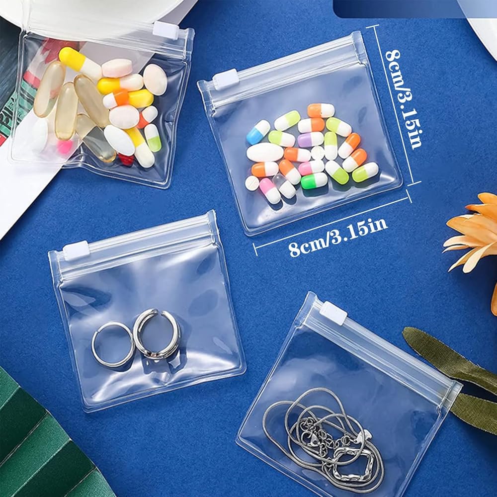 100 قطعة 3 × 3 انش حقيبة حبوب بلاستيكية بسحاب منظم حبوب الدواء للسفر قابل لإعادة الاستخدام مع قفل منزلق للأدوية والأغراض الصغيرة