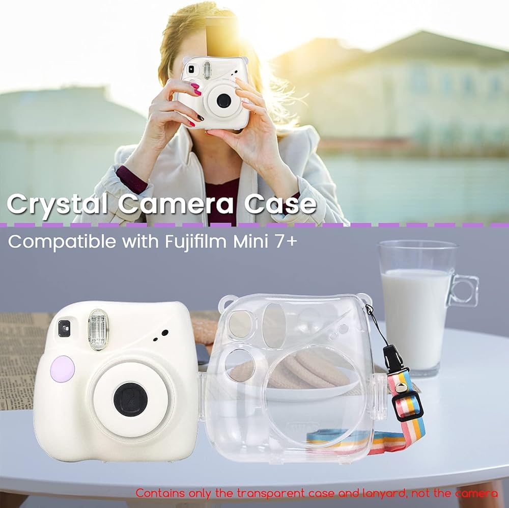 Transparent Protective Case: Fully compatible with Fujifilm Instax Mini 7+, while fully displaying the original camera color, it can fully protect the camera from damage such as drops, impacts, scratches, and scratches.