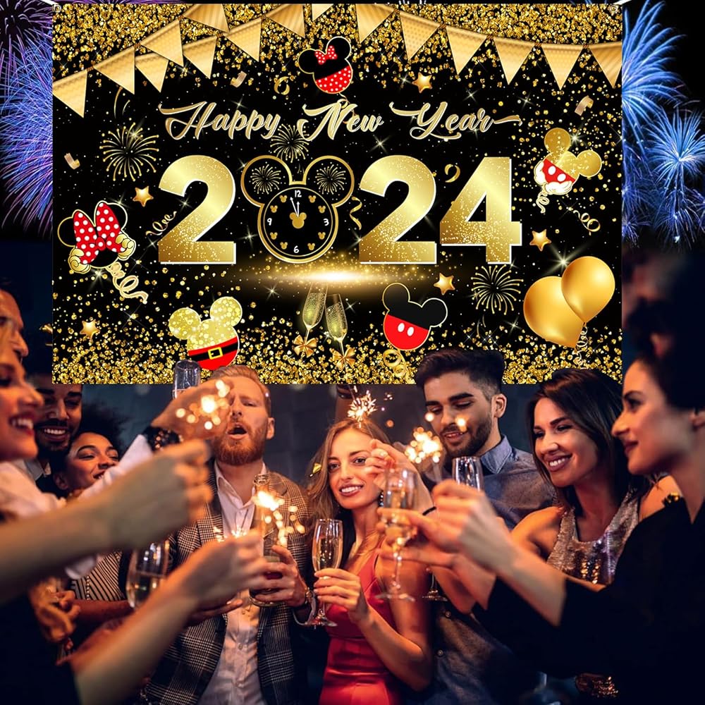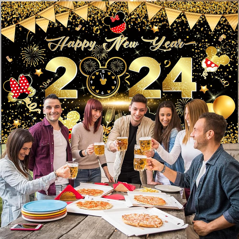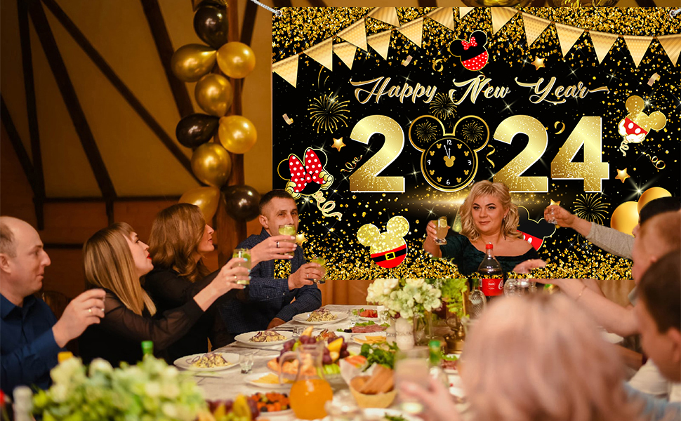Unique Design: Are you looking for a fun and creative New Years 2024 decoration to make your New Years party a hit Our New Years 2024 decoration is your perfect choice. The New Years decoration features black and gold colors, combined with a mouse element and golden glittering stars, printed with "happy new years 2024".This Happy New Years 2024 banner will create an extraant party atmosphere that will make your New Year 2024 party unforgettable.