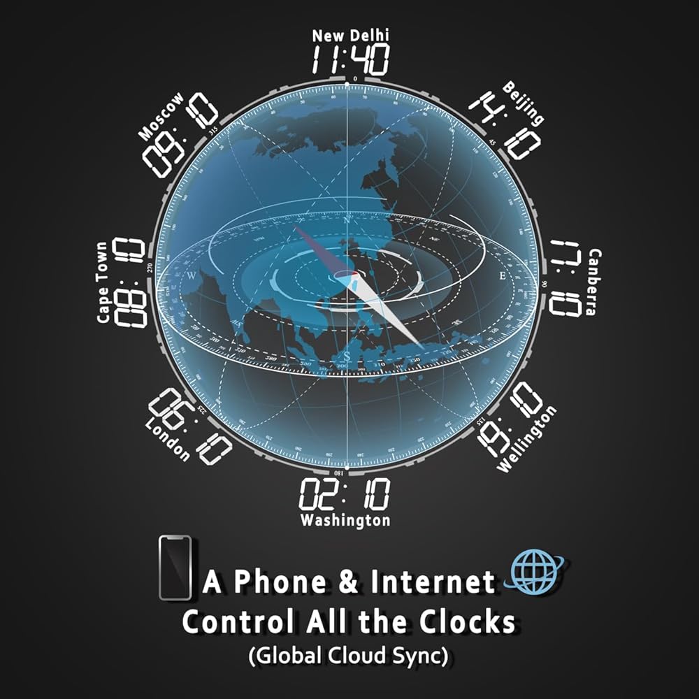 التوقيت العالمي والمزامنة التلقائية: قم بتوصيل الساعة عبر WiFi وإعداد المنطقة الزمنية الخاصة بك. كل يوم، ستقوم ساعة الحائط بمزامنة الوقت تلقائيًا لمرة واحدة، تأكد من دقة الوقت. بغض النظر عن مكان وجودك، الولايات المتحدة أو كندا أو أوروبا، ما عليك سوى الاتصال بالإنترنت المحلي، وسيكون لديك وقت دقيق لما تحتاجه.
