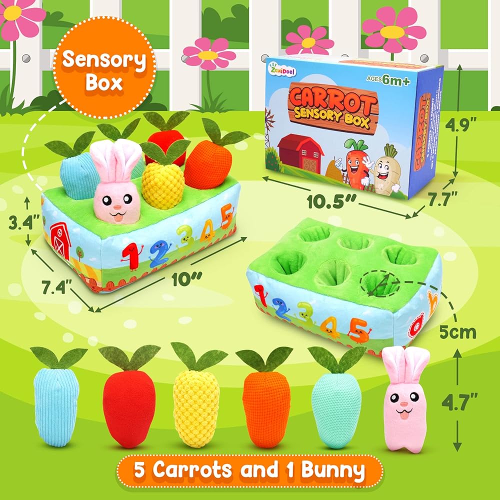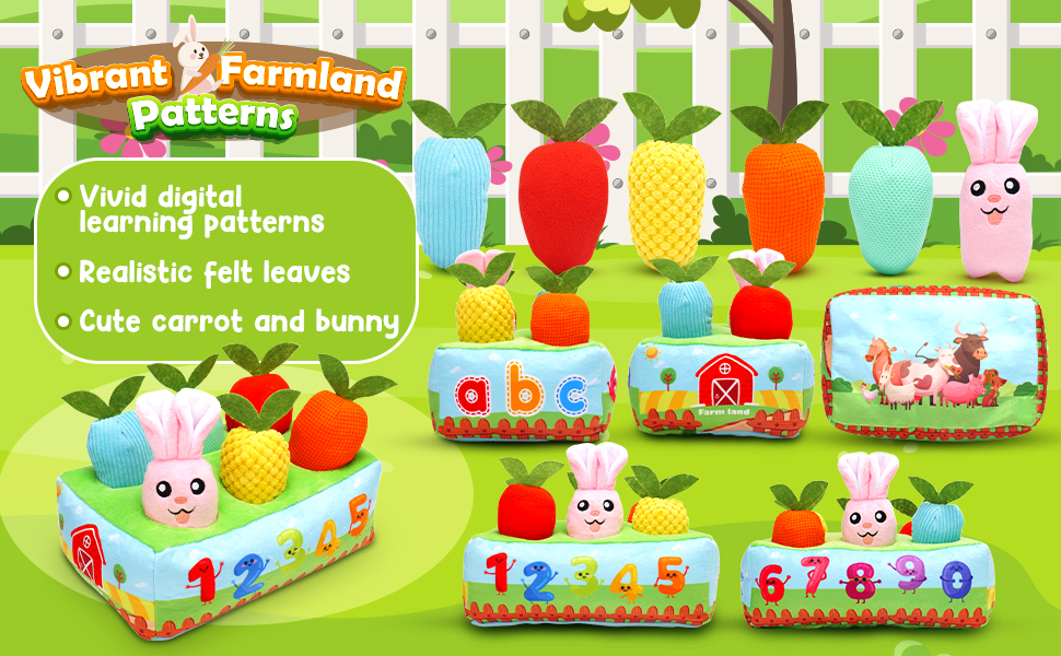【فكرة هدية مثالية للأطفال】هذه اللعبة المذهلة هي هدية رائعة ولعبة حسية للأطفال من سن 6 إلى 12 شهرًا. الجزر ذات الألوان الزاهية والأنماط اللطيفة تجذب انتباه الطفل دائمًا. نحن واثقون من أنك ستقضي وقتًا رائعًا في اللعب بهذه الألعاب مع طفلك. تعتبر لعبة الصندوق الحسي Carrot Harvest الخاصة بنا رائعة أيضًا لألعاب نمو الأطفال حديثي الولادة وهي هدية مثالية لأعياد الميلاد وعيد الميلاد.