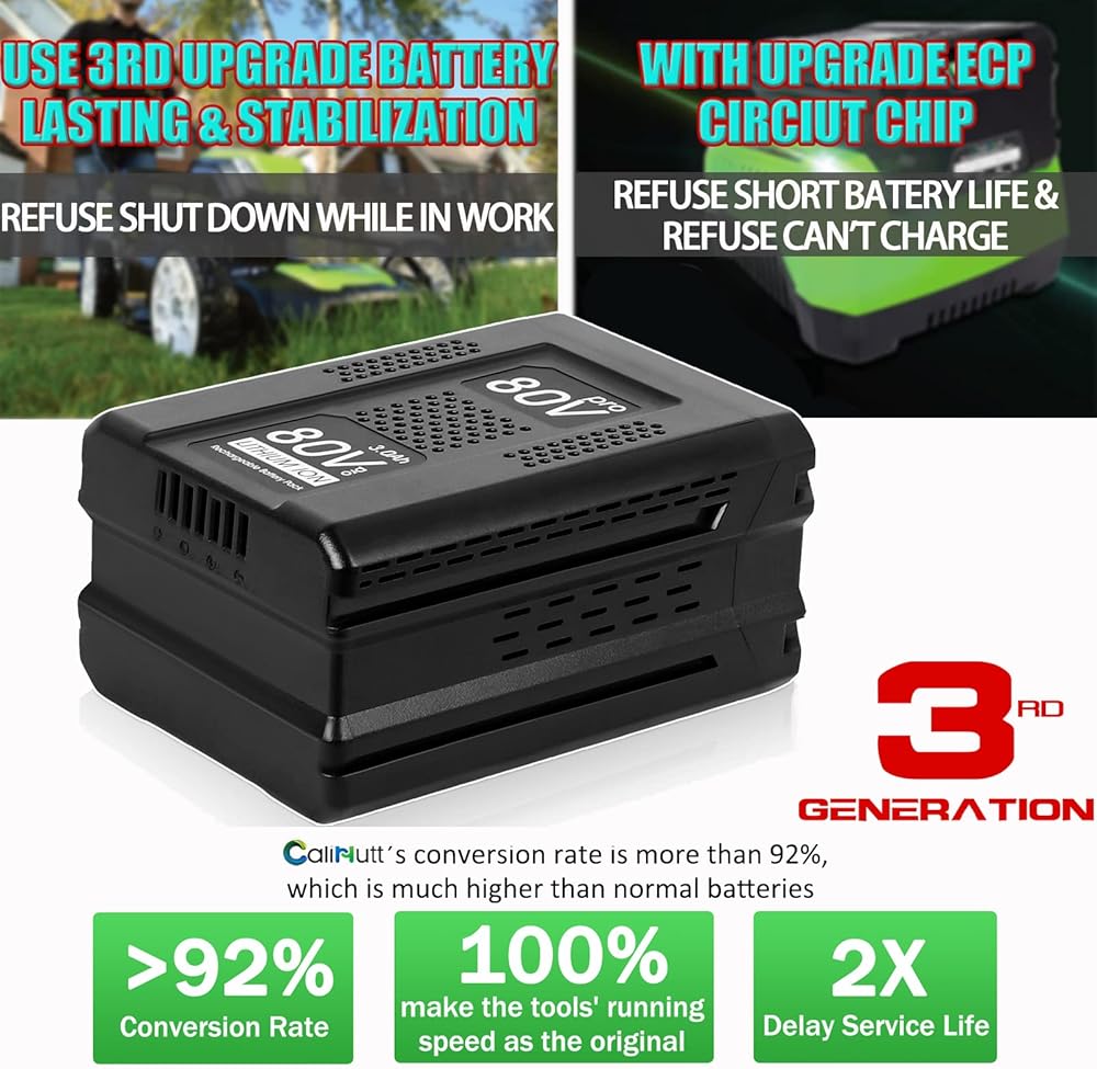 • ✔【ترقية في العمر الافتراضي】بفضل دورة الشحن 1000 مرة ومعدل التفريغ الذاتي المنخفض بنسبة 1%، يمكن أن تعمل بطارية CaliHutt لبطارية Greenworks 80V بسهولة لمدة تصل إلى 3 سنوات دون مشاكل.| لا يسمح لأداة 80 فولت بالتباطؤ في نهاية الشحن.