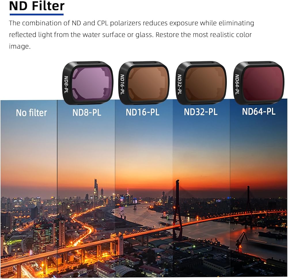 The ND8-PL neutral density filter,provides 3-stop light reduction,avoids over-exposure.Compatible with DJI Mini 3 Pro/Mini 3