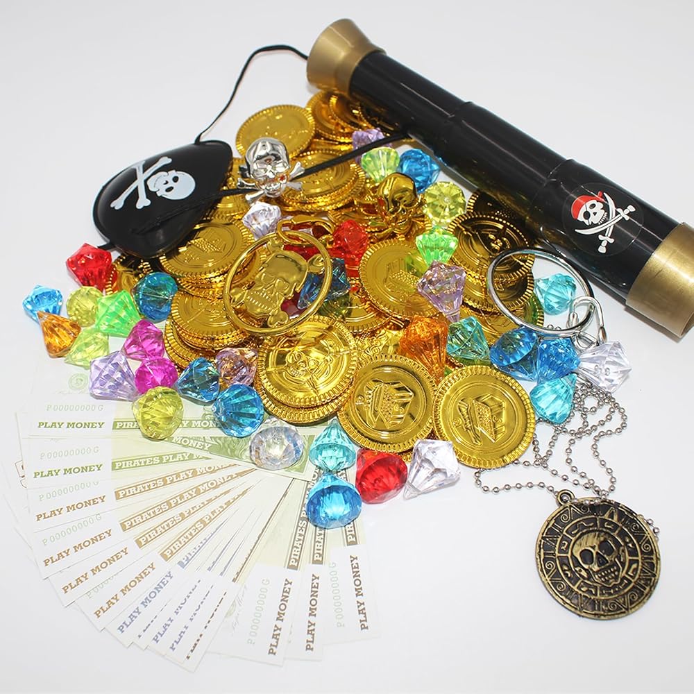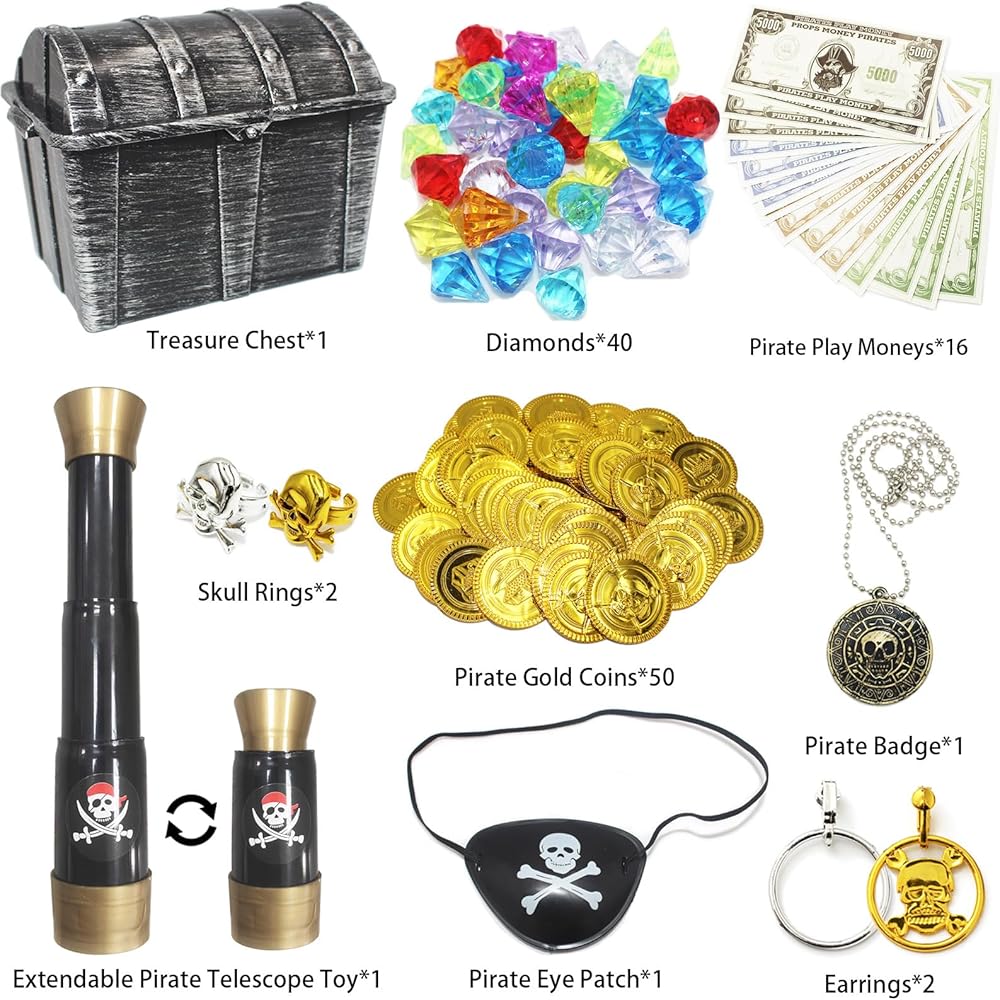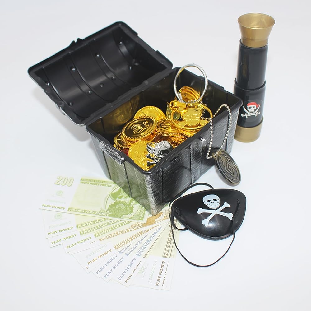 A pirate treasure chest full of treasures waiting to be discovered by kids.