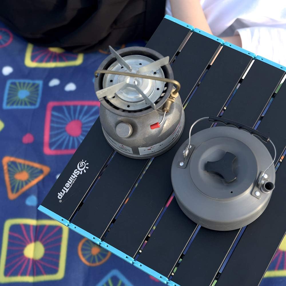 Outdoor Companion: Can be used on sunny or rainy days. The aluminum tabletop is waterproof and easy to wipe, just wipe with a damp cloth, or you can rinse with soap and water after use. Particularly sturdy, scratch resistant and rust free.Perfect for Fishing, Camping, Backpacking, Travelling, Hiking, Picnic party, Sports meeting, Beach, BBQ ect.