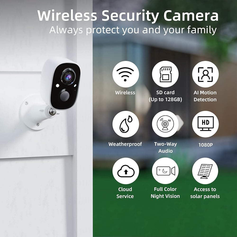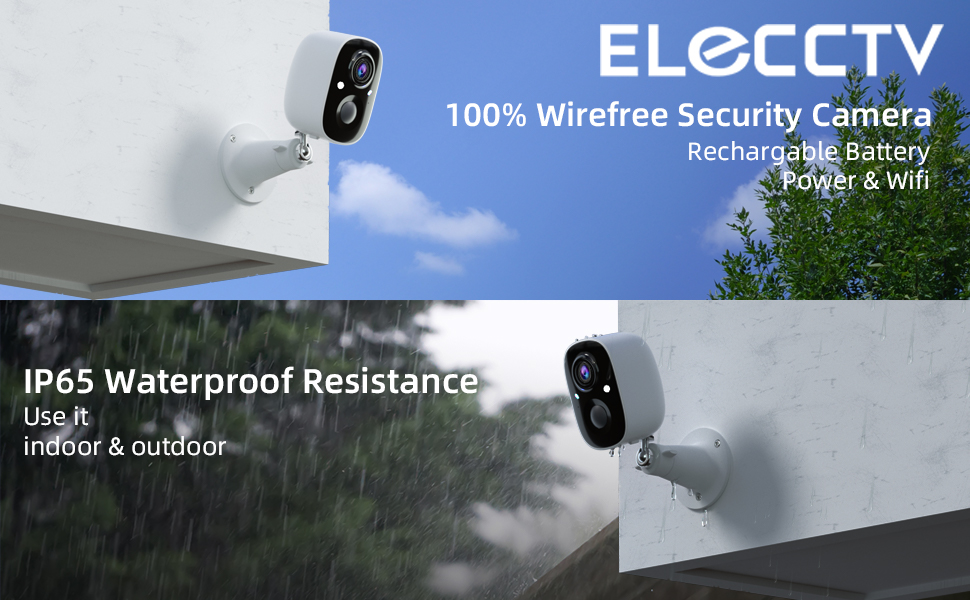 【100% Wireless Rechargeable Camera】No wires and cords are required during the installation. Support 2.4GHz WIFI only. It provides 1 to 6 months power before charging (Reminders: 1. Please fully charge before the first use; 2. The Battery Life depends on the trigger times)
