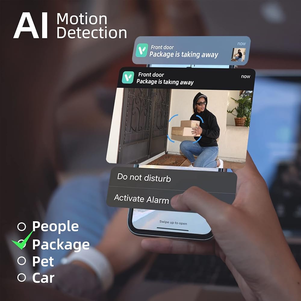 【AI Detection & Instant Alerts】Upgraded PIR sensor sends you real-time alerts when target is detected. VicoHome APP pushes the accurate real-time notification. Customized detection zones and sensitivity can avoid false alarms bothering you when work with cloud storage