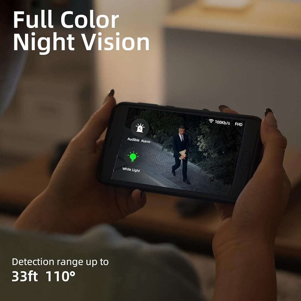 【HD Live Video & Color Night Vision】The WiFi camera provides 1080P HD video, you can get a much clearer range of monitoring effect. And this surveillance camera has infrared mode & color mode for night vision, which can deliver full-color video at pitch-dark night