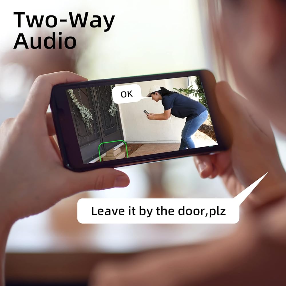 【2-Way Audio & Siren Alarm】The wire-free security camera system support two-way voice real-time calls. This camera is equipped with a siren and spotlight as a deterrent