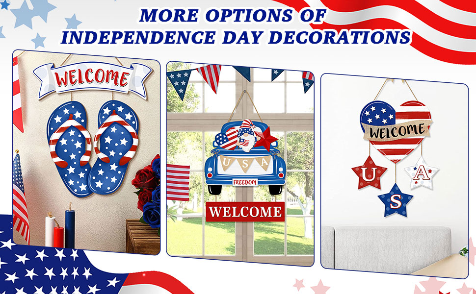 • Sweet Gift Choice--This 4th of July decor is a thoughtful gift for your family member or friends, military veterans and others, to add charm to your home, so you can hang this wall art sign inside or outside to welcome family and friends. Suitable for Independence Days, Memorial Day and Summer Holiday, etc,.