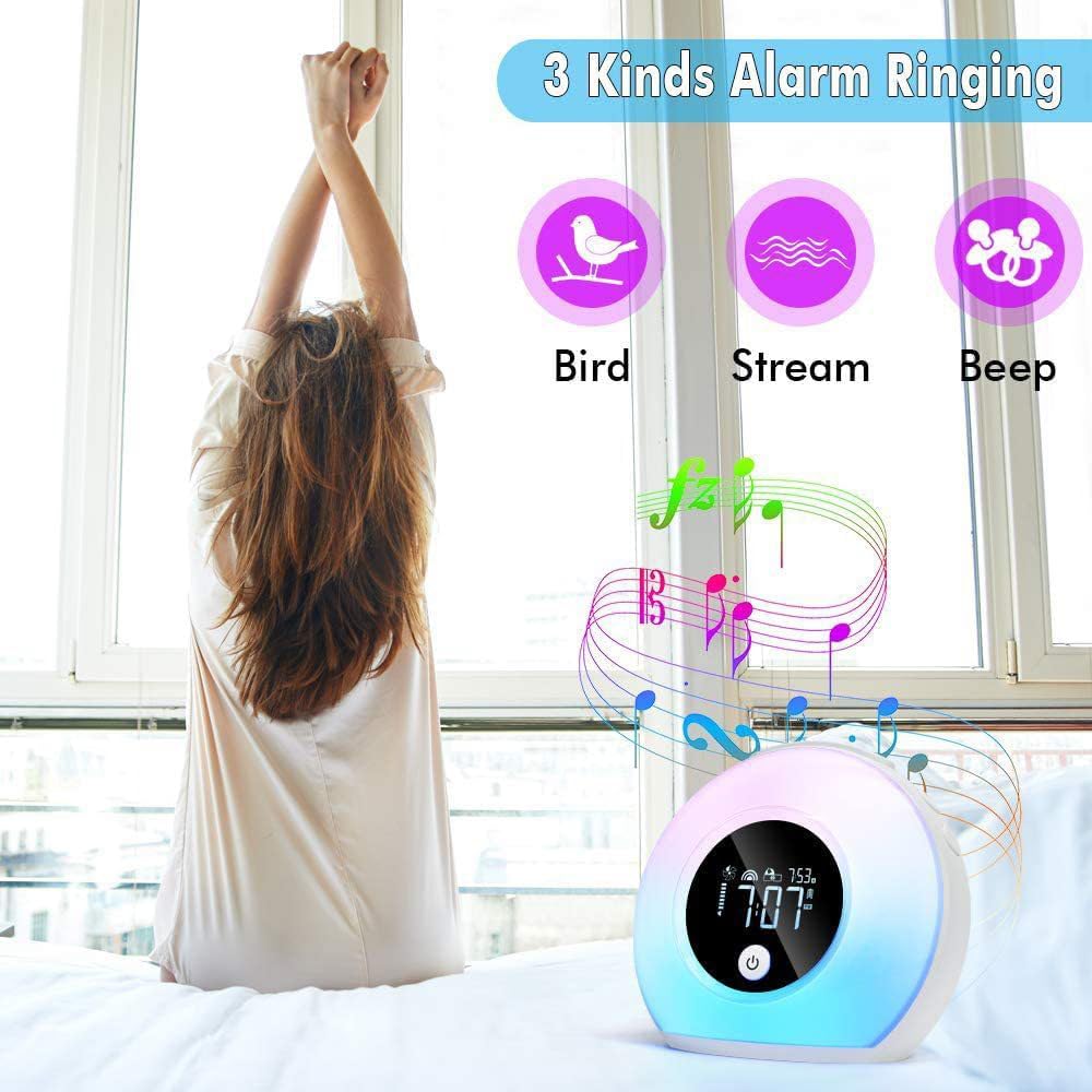 ساعة منبه لشروق الشمس من SEEKING DEER للأطفال، منبه ثقيل النوم، غرفة النوم، مساعد النوم، منبه مزدوج، بلوتوث، ضوء ليلي، 5 ألوان، 3 أصوات، مثالية للهدايا