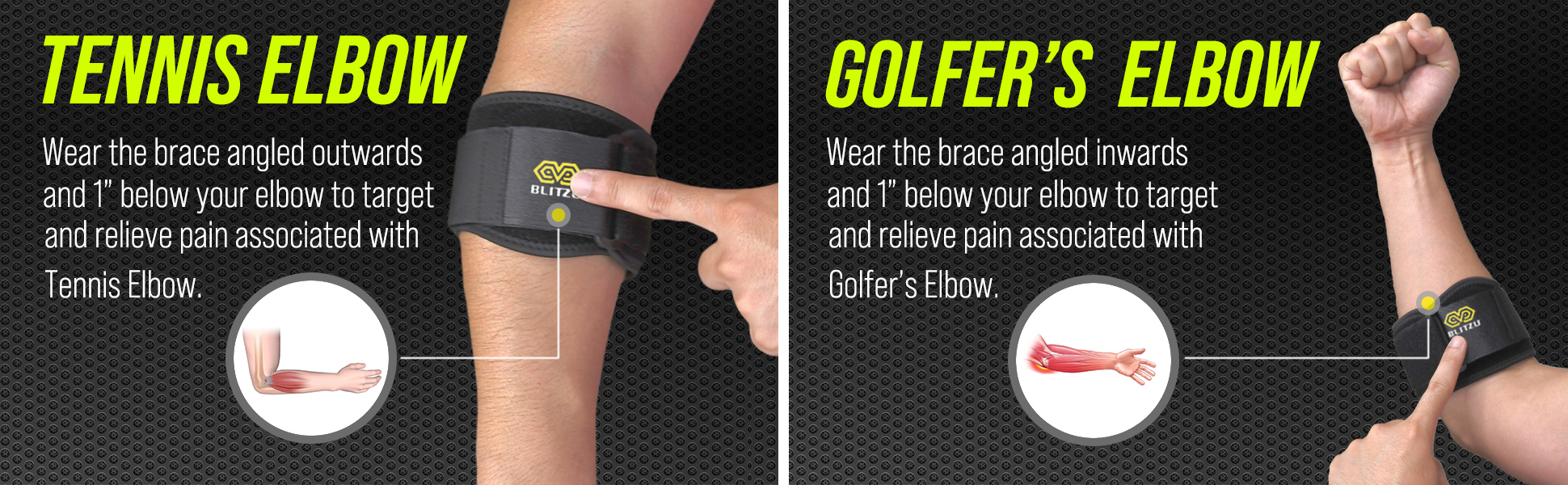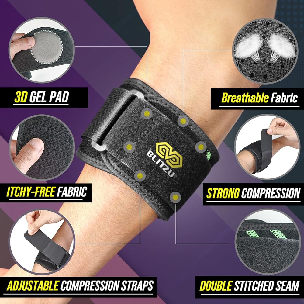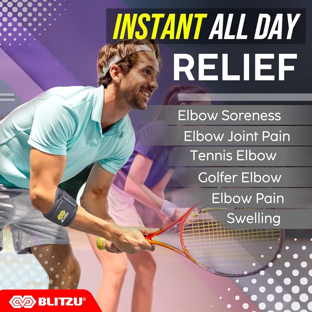 بليتزو دعامة كوع لتخفيف الام الكوع للتنس والجولف. دعامة مضادة مع وسادة ضغط ثلاثية الابعاد