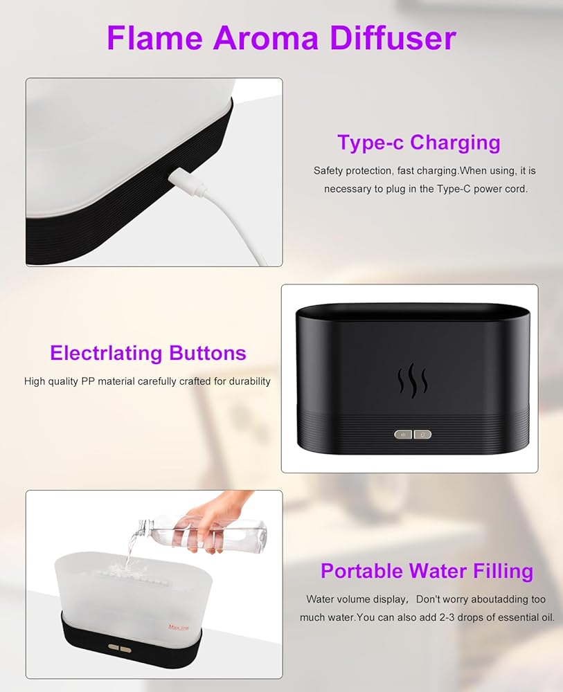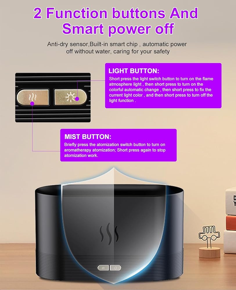 【جهاز العلاج العطري باللهب】تتحد مصابيح LED الأكثر ذكاءً مع الرذاذ، هناك سبعة أنواع من تغيرات لون اللهب، مما يخلق تأثيرًا واقعيًا، تمامًا مثل الحرق في المدفأة، والهواء العطري، وتهدئة الجسم والعقل، وتخفيف التوتر، والسماح لك وداعا للأرق. هدية رائعة للعائلة والأصدقاء والأحباء والزملاء في أعياد الميلاد والعطلات والانتقال لمنزل جديد والمزيد.