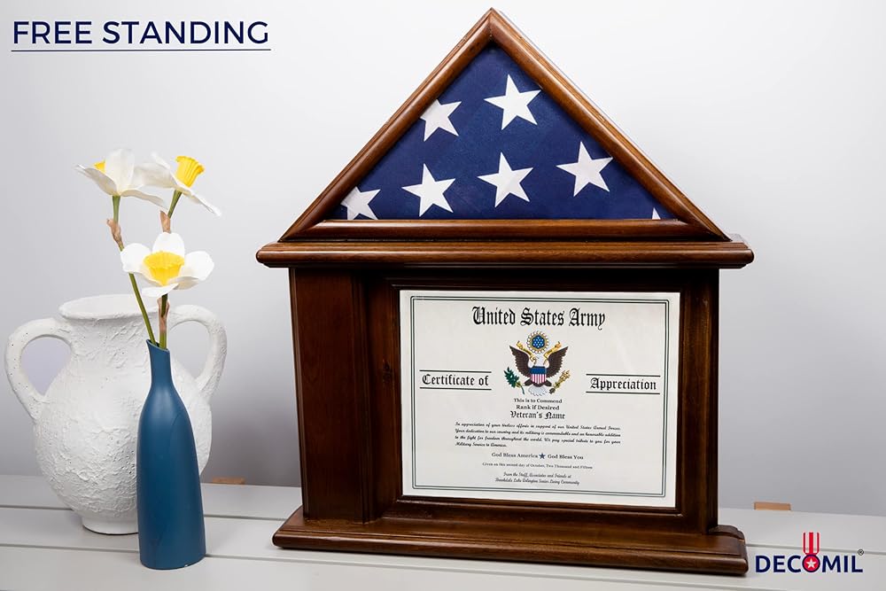 - حافظة عرض رائعة الكل في واحد بعلم وتذكارات تحمل العلم القياسي 3' × 5' مع حافظة عرض مرفقة لعرض جميع جوائز وتذكيراتك الثمينة بفخر