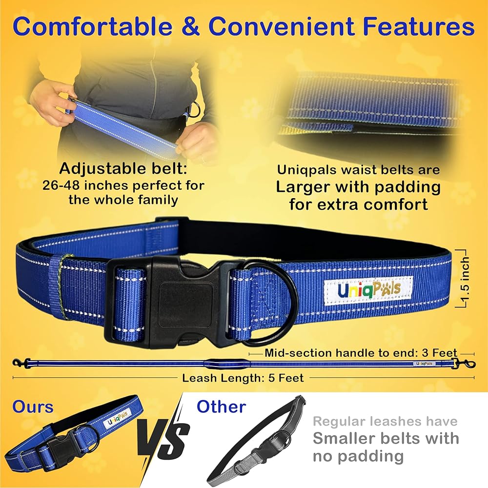 {اشتر بثقة} بفضل الحرفية الفعالة، نحن نؤمن بالجودة الممتازة لمعدات المشي لمسافات طويلة للكلاب لدينا، كما أن رضا العملاء هو أولويتنا القصوى. في حالة عدم ملاءمة مقود الخصر الخاص بنا للكلاب الكبيرة لك ولعائلتك، نضمن لك استرداد أموالك بالكامل في غضون 30 يومًا. وهذا يجعل مقود الخصر الخاص بنا لتمشية الكلاب مثاليًا كهدية. اطلب مقود الجري لكلبك الخالي من المخاطر الآن!